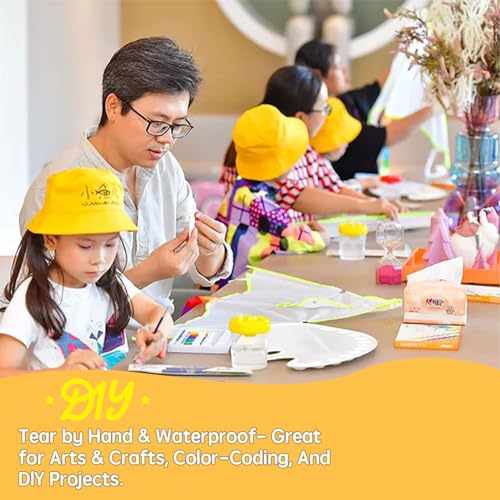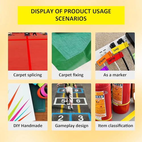 APPLICATION:SIKEDEPRO Duct Tape finds extensive applications in various settings such as homes, schools, kindergartens, offices, shops, warehouses, exhibitions, and more. It is used for organizing cables temporarily, securing pipes, carpets, advertising or decorative materials on floors, repairing furniture and sports equipment, marking warning signs or special areas on floors, coloring moving boxes, bricks, and toys, sealing packing, undertaking DIY projects, creating project progress tables and charts, styling cloth, and much more. With its versatility, SIKEDEPRO Duct Tape is an indispensable daily essential. FEATURES: This industrial-grade duct tape boasts premium quality and heavy-duty performance. Featuring a strong adhesive with one side coated in butyl silicone, it can withstand peel-strength of up to 18N/IN and pull-strength of up to 65N/IN. UL lab tested for high performance across various materials including metal, cloth, leather, tile, plastic, concrete, marble, rubber, vinyl, wood, and more. It leaves behind no residue upon removal and is abrasion-resistant, making it suitable for both short-term and long-term use. Our all-weather colored duct tape, featuring a waterproof and residue-free design, is perfect for various tasks such as sealing, waterproofing, and winterizing your home. It's also ideal for hanging plastic sheeting and conducting emergency repairs. With its extra strength and all-natural adhesive, our duct tape ensures that no residue is left behind after use. Safety is a top priority with SIKEDEPRO Duct Tape, crafted to resist dust, odor, damage, and residue while ensuring easy installation. Tear it horizontally or vertically by hand and apply directly to surfaces without the need for any special pre-treatment. Assorted Colored Duct Tape: This pack includes 6 rolls of multicolored duct tape, each with a width of 2 inches and a length of 15 yards. The colors included are blue, yellow, red, green, orange, and purple, creating a vibrant rainbow assortment. Perfect for crafts, arts, painting, or other projects and activities, this varied tape collection stimulates kids' imagination and creativity while enhancing their color recognition skills.