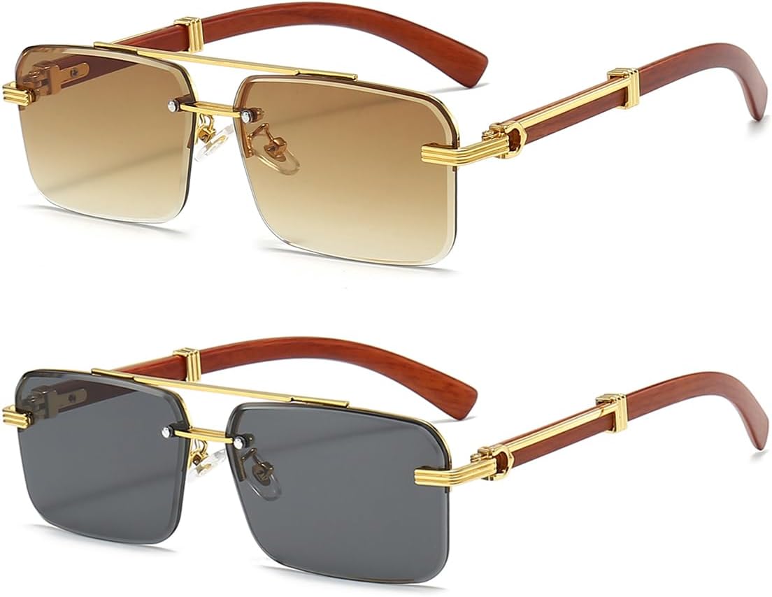 Gleyemor Mens Sunglasses Fashion Rimless Rectangle Sunglasses Square Frameless Sunglasses for Men