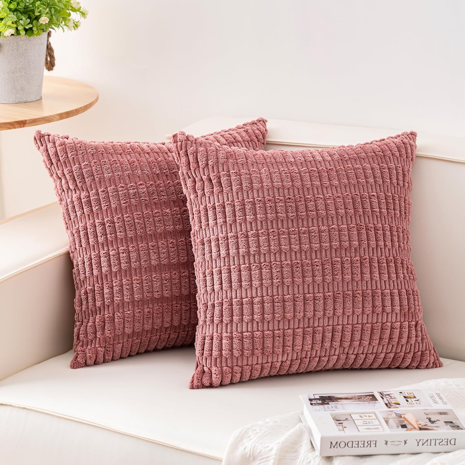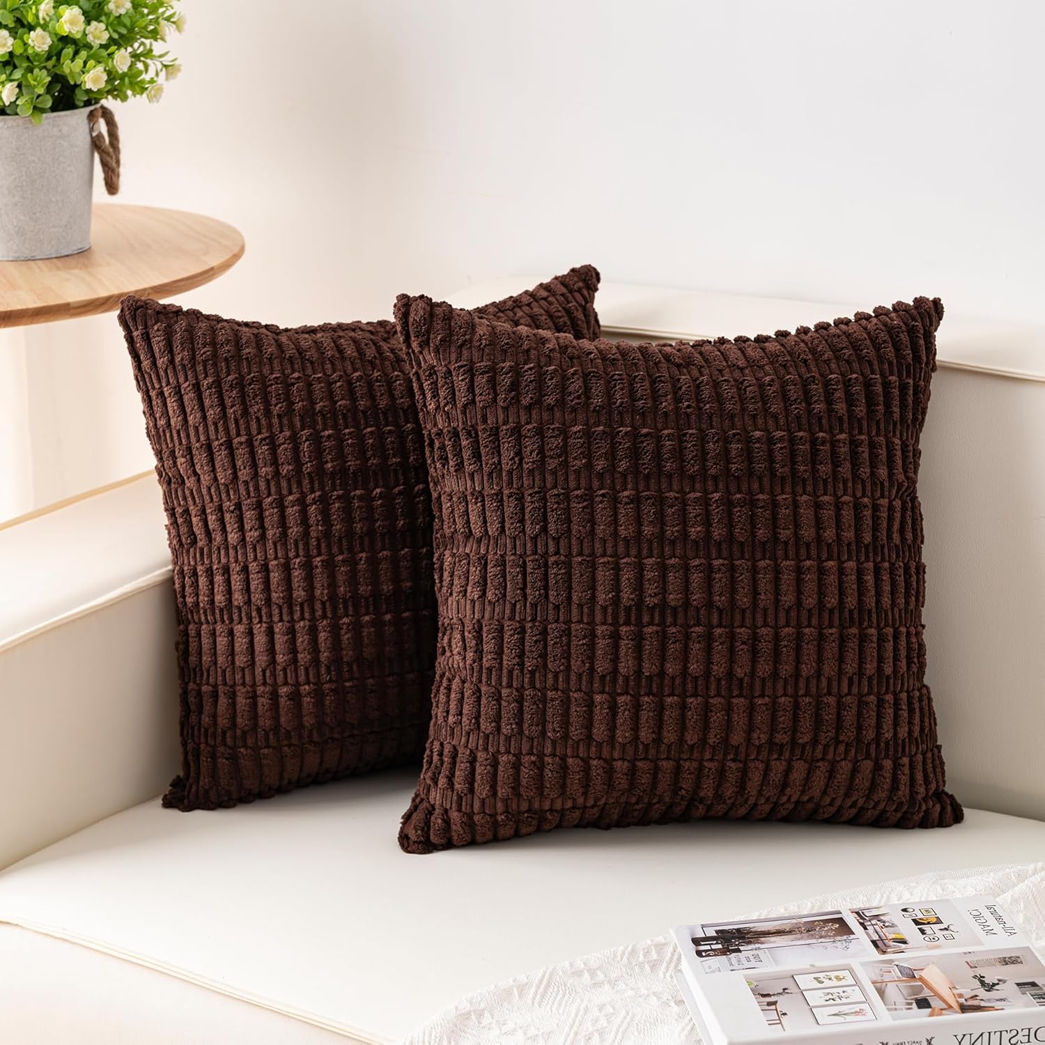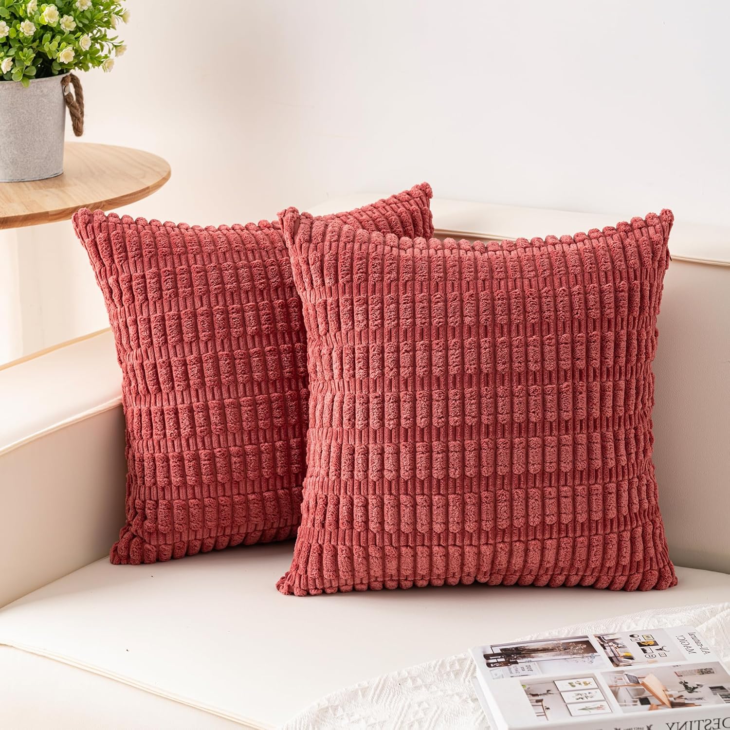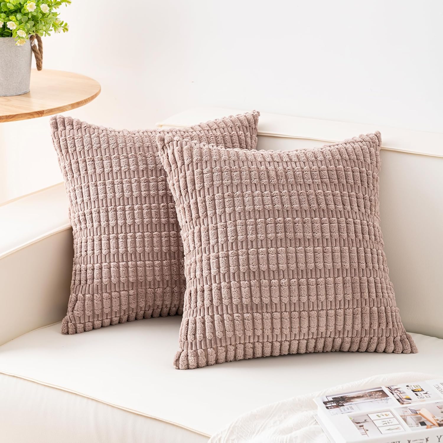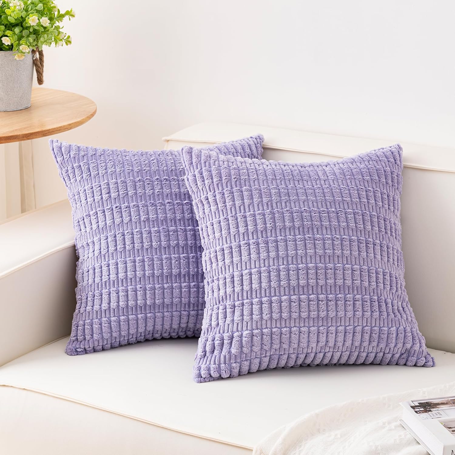 Aegero Pack of 2 Corduroy Decorative Throw Pillow Covers 18x18 Inch Soft Striped Pillow Covers Modern Farmhouse Home Decor for Sofa Living Room Couch Bed(Cream White)
