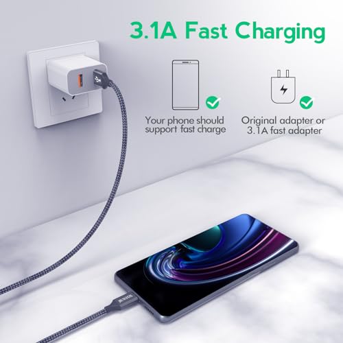 JIUWFOX USB to USB C Cable, (5-Pack, 3/3/6/6/10 ft) for iPhone 17 16 Charger Cord Fast Charging, for Samsung Galaxy S25 S24 S23 S22 A17 A16, Pixel 10 9