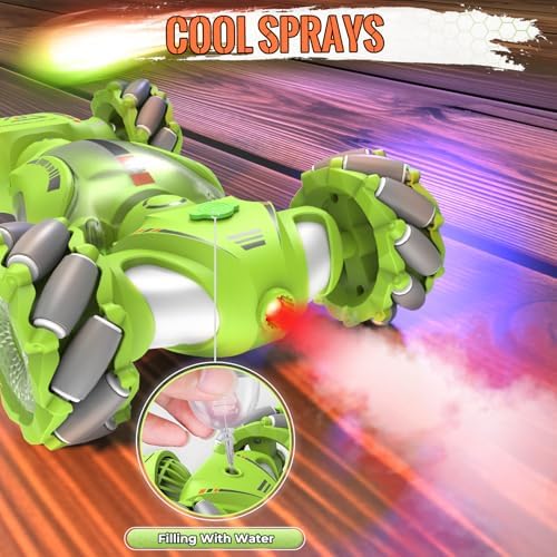 Gesture Sensing RC Stunt Car Toys Gifts for 6-8 8-12 Kids, 2.4Ghz 4WD Hand Controlled RC Car with Light & Music & Spray, Double-Sided 360° Rotating Birthday for Boys