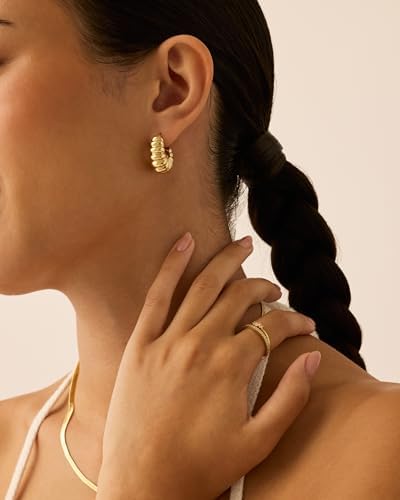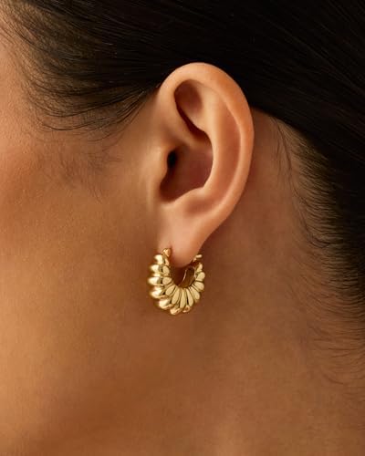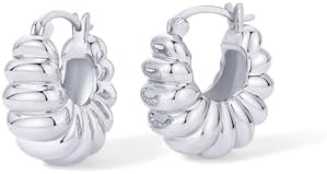 HIGHLIGHTS: Revive ’90s nostalgia with these chunky retro-style earrings. These bold statement hoops feature 925 sterling silver posts and measure 20.4 mm in outer diameter with a 10.3 mm width, reinventing the classic hoop with a puffier, ribbed design that is truly unique. PREMIUM QUALITY: Crafted with rhodium plating, these hoop earrings for women are 100% hypoallergenic and safe for sensitive skin. Each earring is nickel-safe, lead-safe, and cadmium-compliant, crafted to meet strict U.S. and EU standards for lasting comfort and everyday wear, whether you’re at work, out with friends, or celebrating special moments. PERFECT GIFT FOR HER: These bold earrings come in an elegant premium box that's ready to be gifted, making it an unforgettable present to surprise mom, wife, daughter, girlfriend, or best friend. These trendy earrings are ideal for Valentine's Day, Mother's Day, Christmas, birthdays, anniversaries, or "just because" moments. OUR SATISFACTION PROMISE: Your happiness is our number one priority. If you’re not loving your product, let us know within 60 days so we can make it right! To get in touch, email or chat with us - a member of our team will be happy to help. We’re a proud American-owned business, committed to delivering top-quality products and exceptional customer service. SUSTAINABILITY: PAVOI is dedicated to sustainability throughout our entire product cycle. Our jewelry is made from 100% recycled materials and we package in 99% recycled materials. We work to reduce our carbon emissions and offset plastic consumption by removing 275,000 bottles from oceans annually. We are committed to maintaining a business that minimizes our environmental impact.