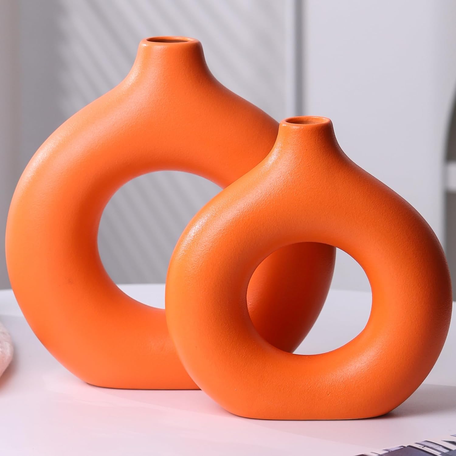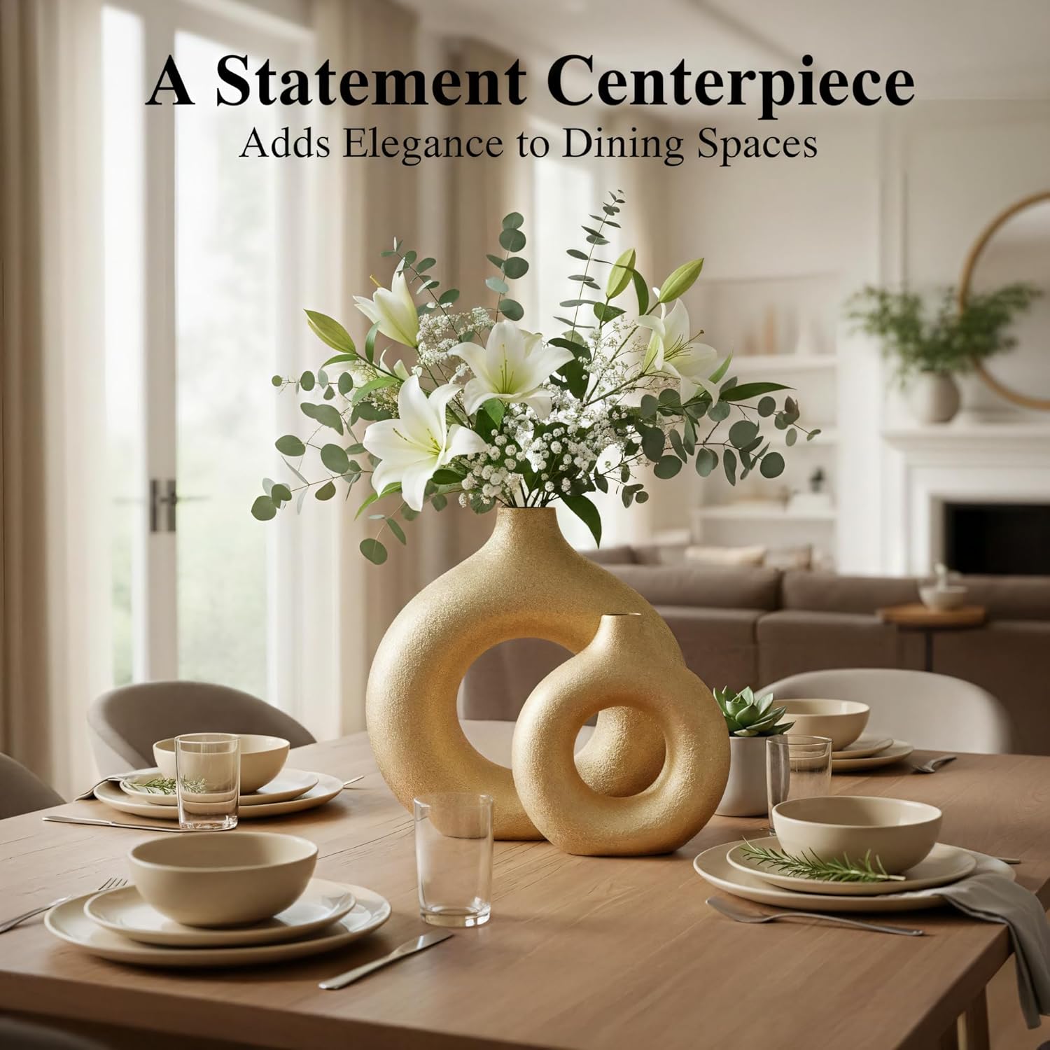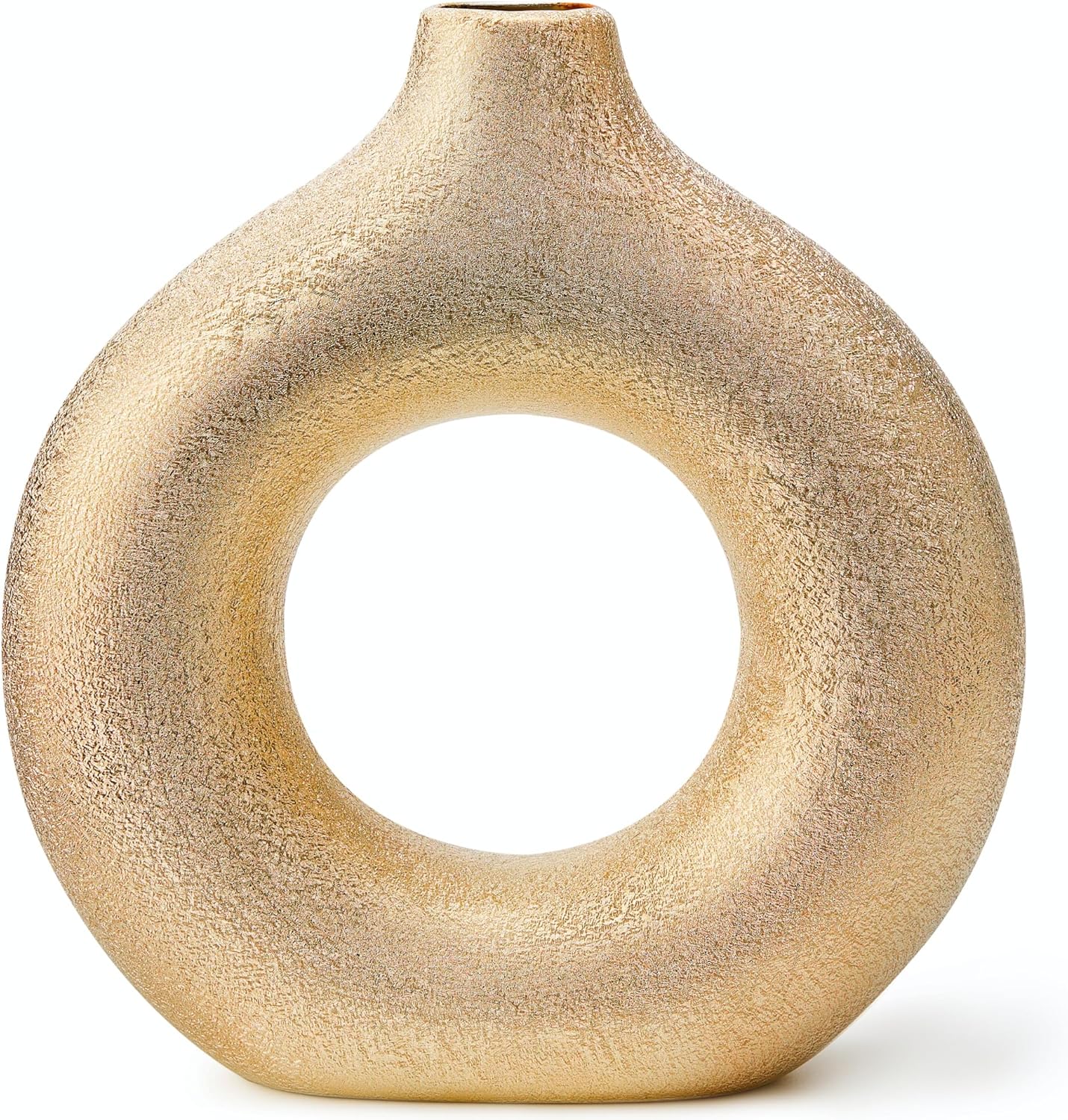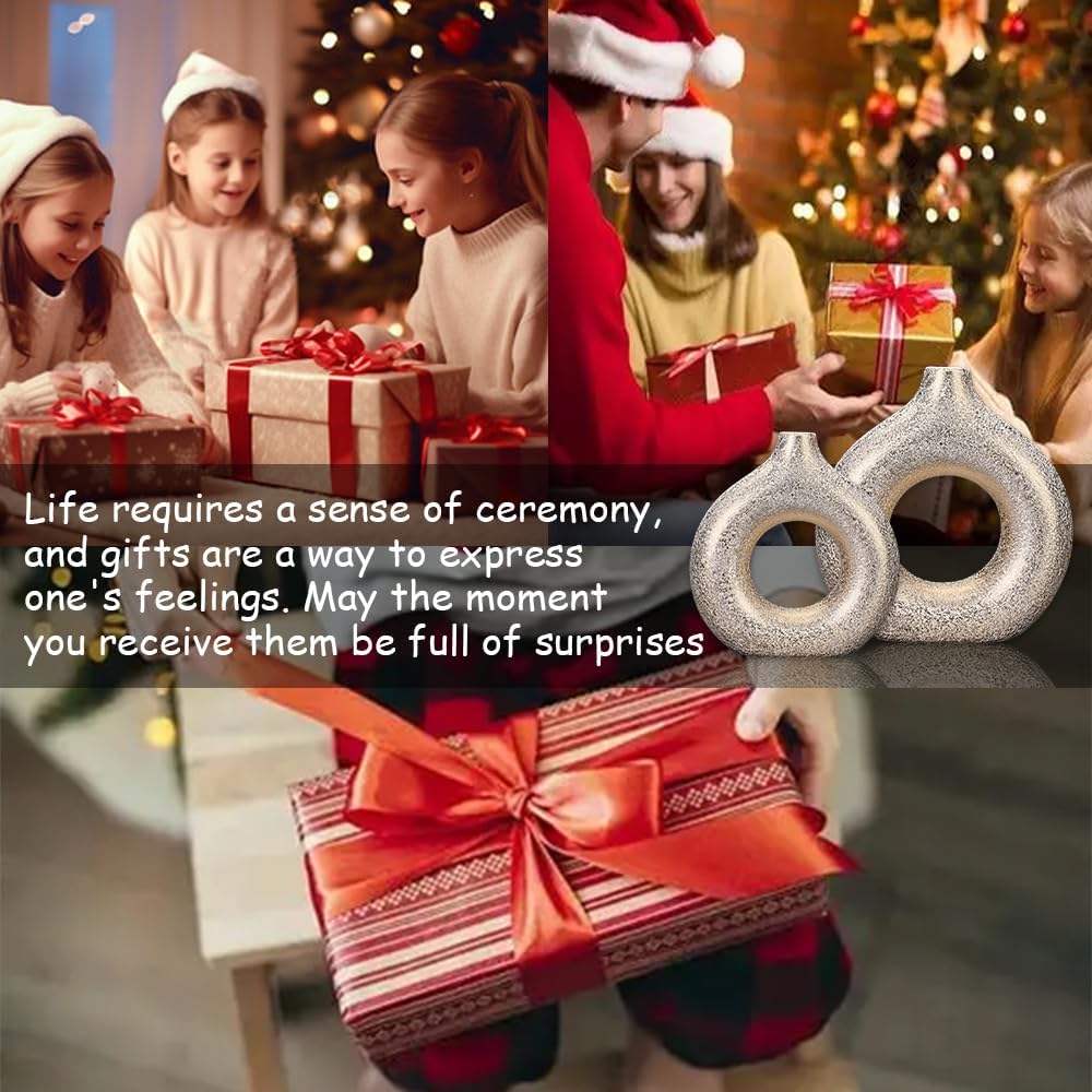 Modern Donut-Shaped Decorative Vases, Handmade Minimalist Boho ins Style, Modern Vase for Home Decor for Wedding Dinner Table Party Living Room Office Bedroom (Gold, Large + Small)