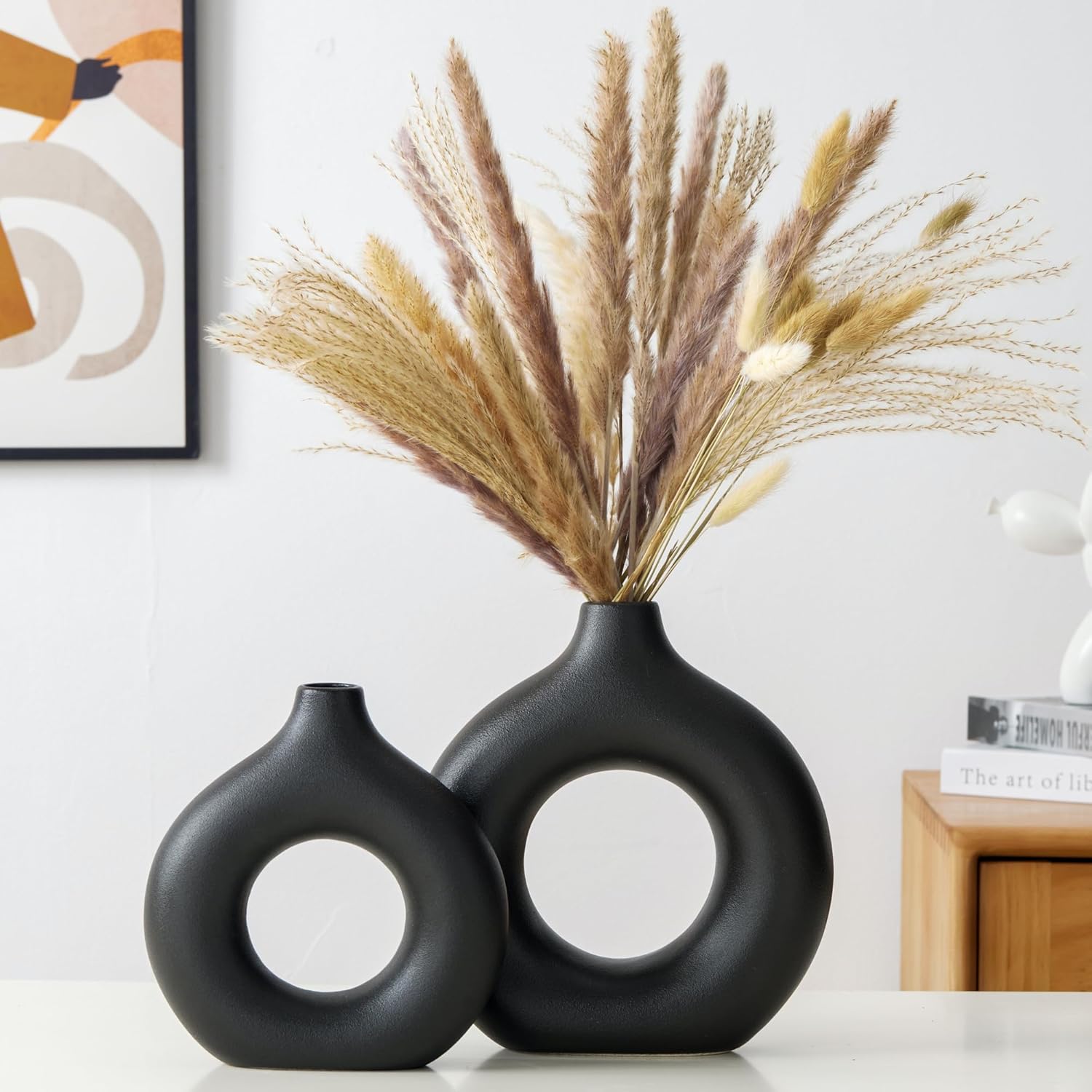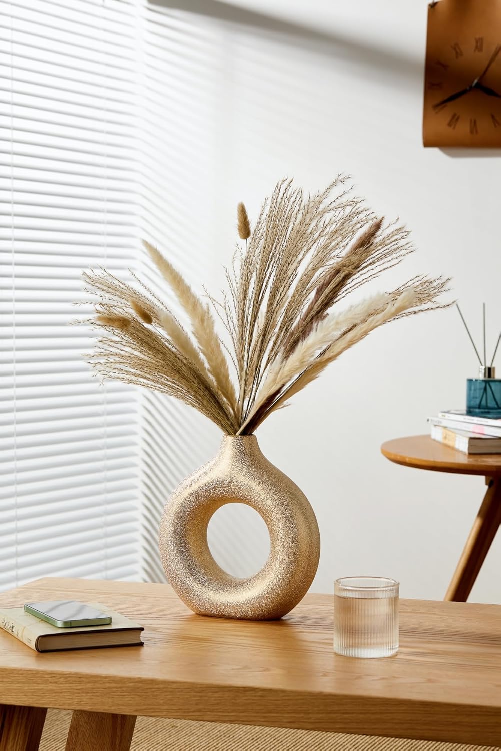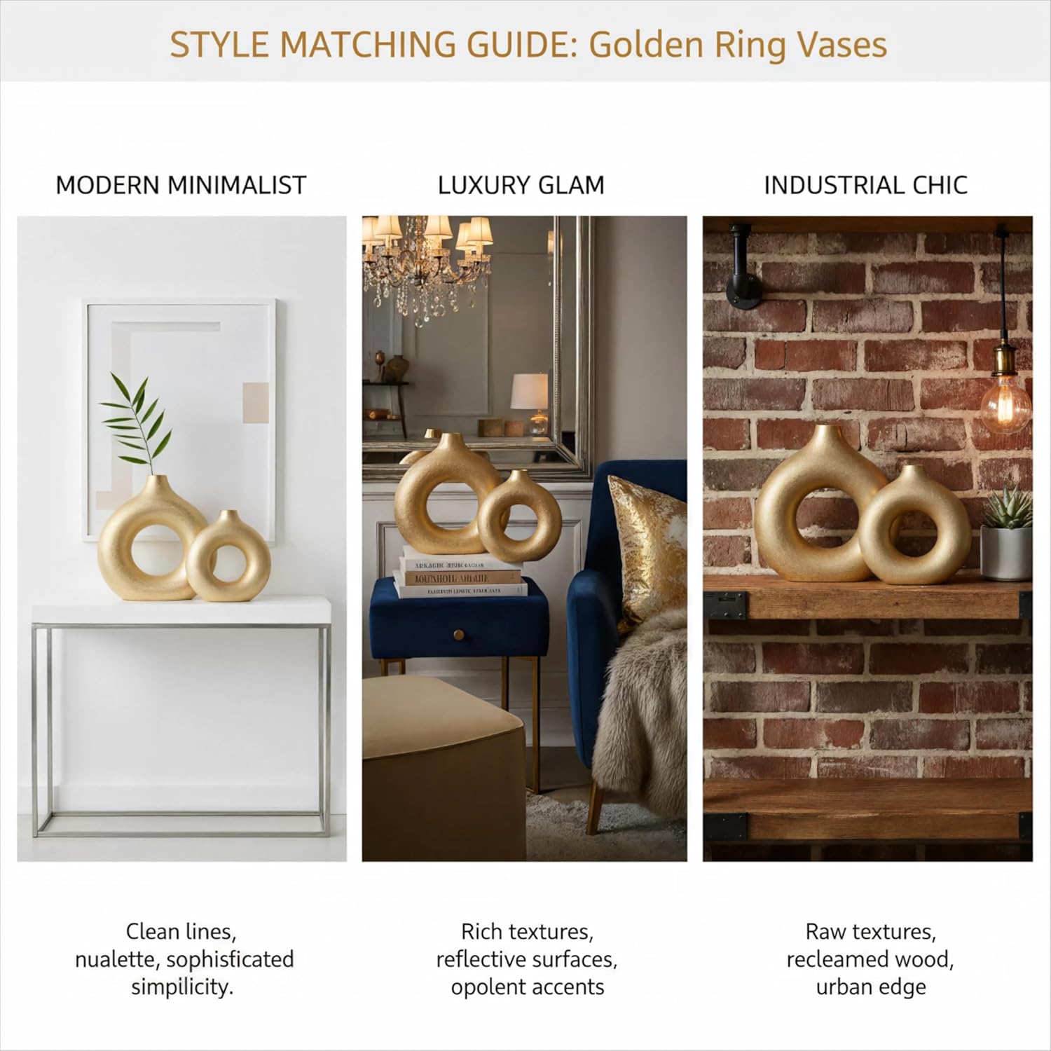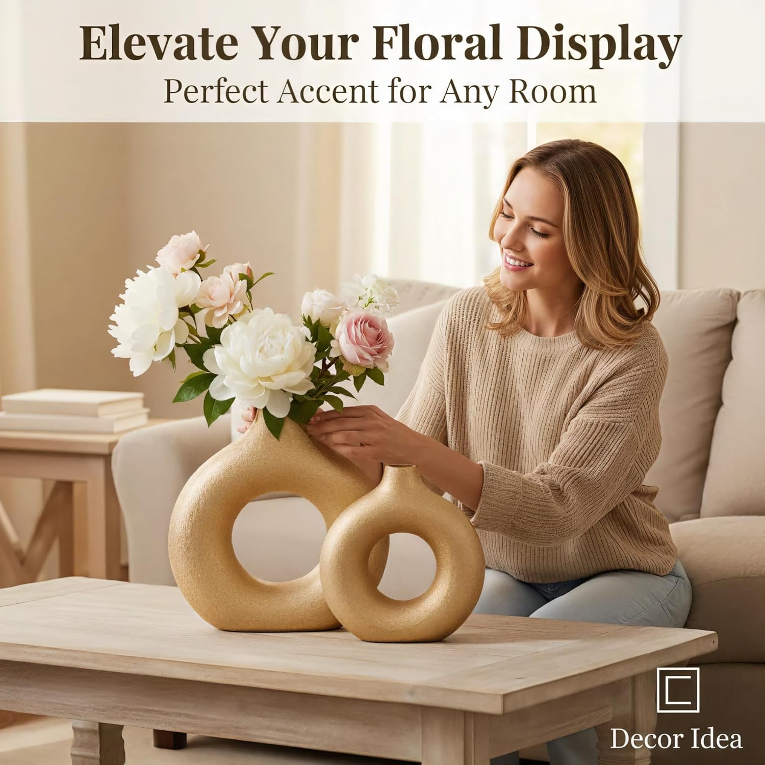 Modern Donut-Shaped Decorative Vases, Handmade Minimalist Boho ins Style, Modern Vase for Home Decor for Wedding Dinner Table Party Living Room Office Bedroom (Gold, Large + Small)