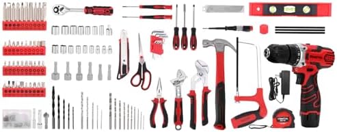 Upgrade & Durable Toolbox: The Upgrade toolbox is a multi-functional solution that combines aesthetics and practicality. It features a storage compartment with a separate sliding drawer, offering greater capacity than standard toolboxes. This design allows for organized storage of various tool types, making it easier and quicker to find the tools you need Fully Functional & Highly Practical: The 276 Pcs tool set meets Daily Work Needs, easily handling tasks such as furniture repairs, appliance installations, and simple renovations. It includes a variety of common tools, such as screwdrivers, wrenches, pliers, hammers, Needle-Nose Pliers, Saw, drill, They provide convenience and efficiency for our daily lives 12V Cordless Drill: 276 Pcs home tool kits includes a 1.5 Ah Cordless Lithium-ion Drill with a 3/8" (10 mm) max keyless chuck, two-speed control and a maximum speed of 1500 RPM. Weighing in at just 1.76 LB, it's incredibly lightweight, it's your ideal companion for tackling various DIY projects High-Quality Materials: The tools are crafted from premium materials with a heat-treated chrome finish, ensuring durability and reliability for long-lasting use. The handles are made from TPR material, providing a comfortable grip Ideal Gift Choice: The upgraded 276-piece tool set meets the needs of daily home repairs and small projects. This comprehensive and practical hand tool kit makes a thoughtful and useful gift for Father’s Day, Christmas, or any occasion, perfect for fathers and friends alike