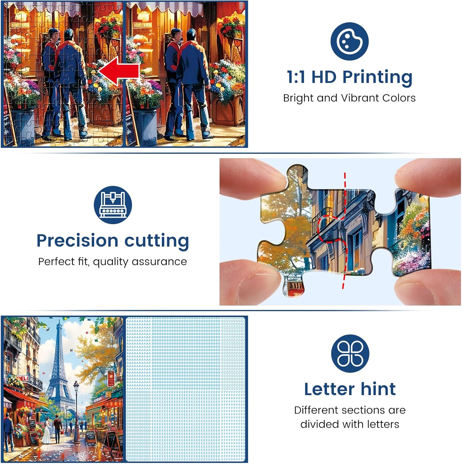 1000 Pieces Puzzle for Adults - Charming Paris Puzzle for Adults Children - Recycled Paper Jigsaw Puzzle 1000 Pieces - Fun and Challenging Family Game Great Gift Idea, Finished Size is 28 * 20 in