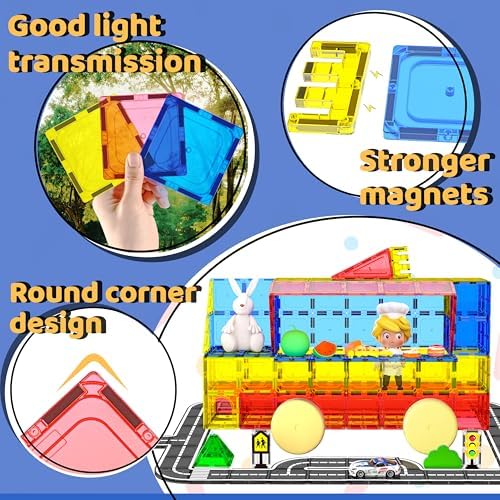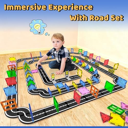 Magnetic Tiles - Road Set, Magnetic Building Blocks, Preschool Montessori Toys Gift for 3+ Year Old Boys and Girls, Sensory Christmas Toys for Kids Aged 3-5 and 4-8, Ideas for Toddler with Autism