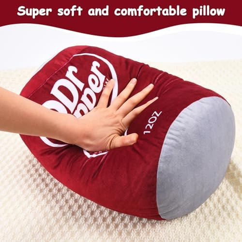 1. Unique Soda Can Design Dr Pepper pillow plush designed as a realistic soda can, funny food plush cushion that stands out as cute room decor. Perfect throw pillow for couch, bed, sofa, office, or coffee corner decoration. 2. Ultra Soft & Comfortable Made with premium plush fabric and high-quality PP cotton filling, this soft pillow is perfect for hugging, relaxing, and everyday comfort. A cozy decorative pillow for kids and adults. 3. Funny Pillow for Any Occasion A fun and eye-catching novelty pillow that makes a great conversation piece. Perfect funny gift for coffee lovers, soda fans, friends, family, birthdays, holidays, and housewarming. 4. Aesthetic Room Decor Cute aesthetic pillow that upgrades any bedroom, living room, gaming room, or office space. Ideal for sofa decor, bed decor, and modern home styling. 5. Durable & High Quality Strong stitching and durable materials ensure this plush cushion keeps its shape and softness over time. Easy to maintain and built for long-lasting use.