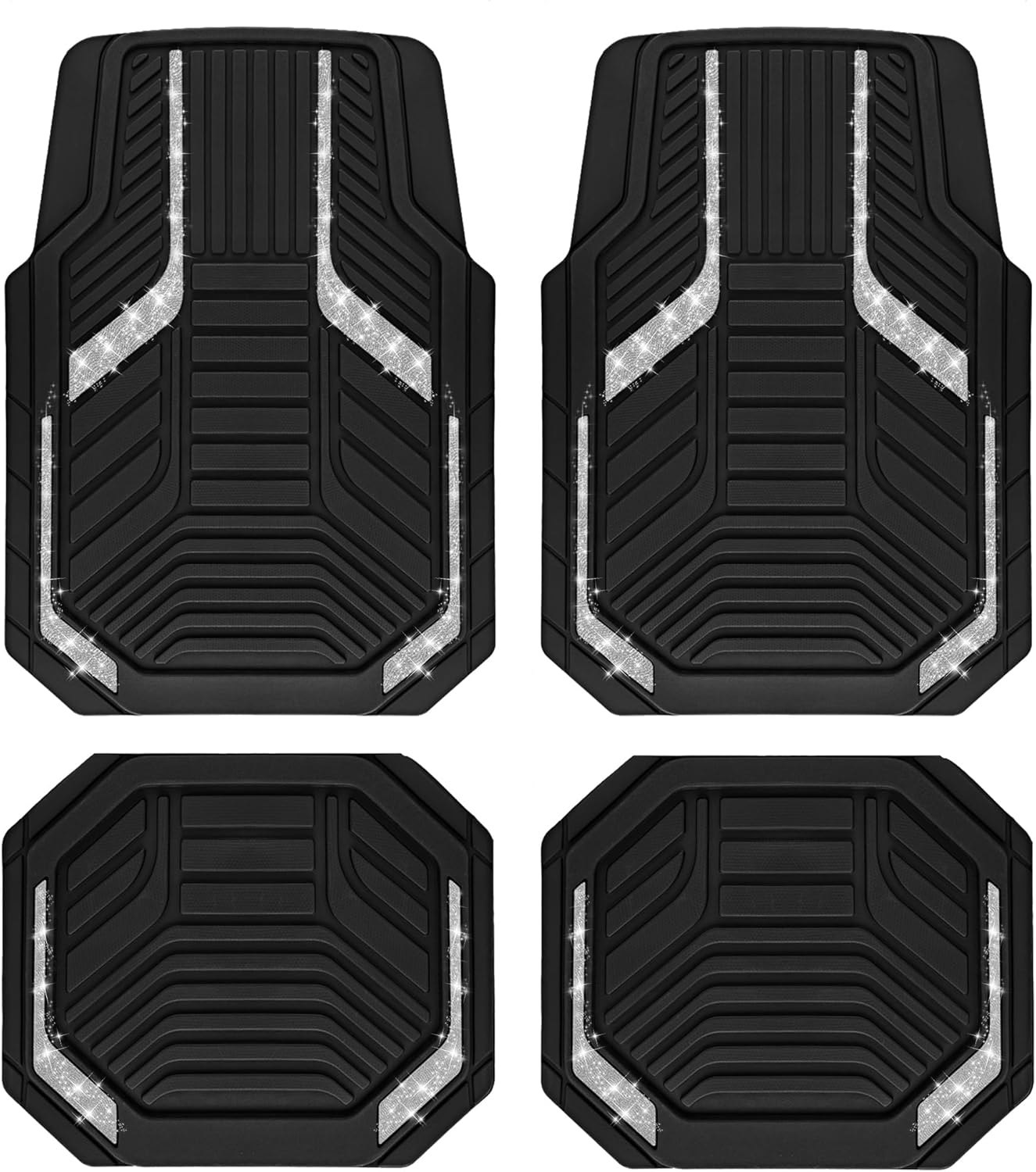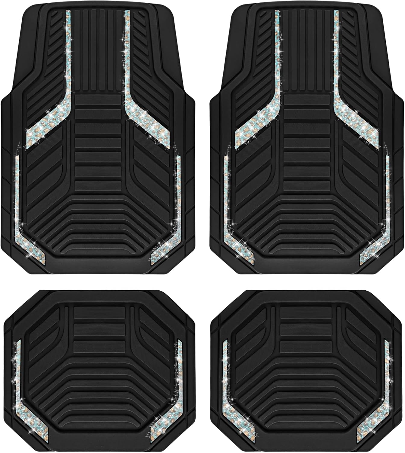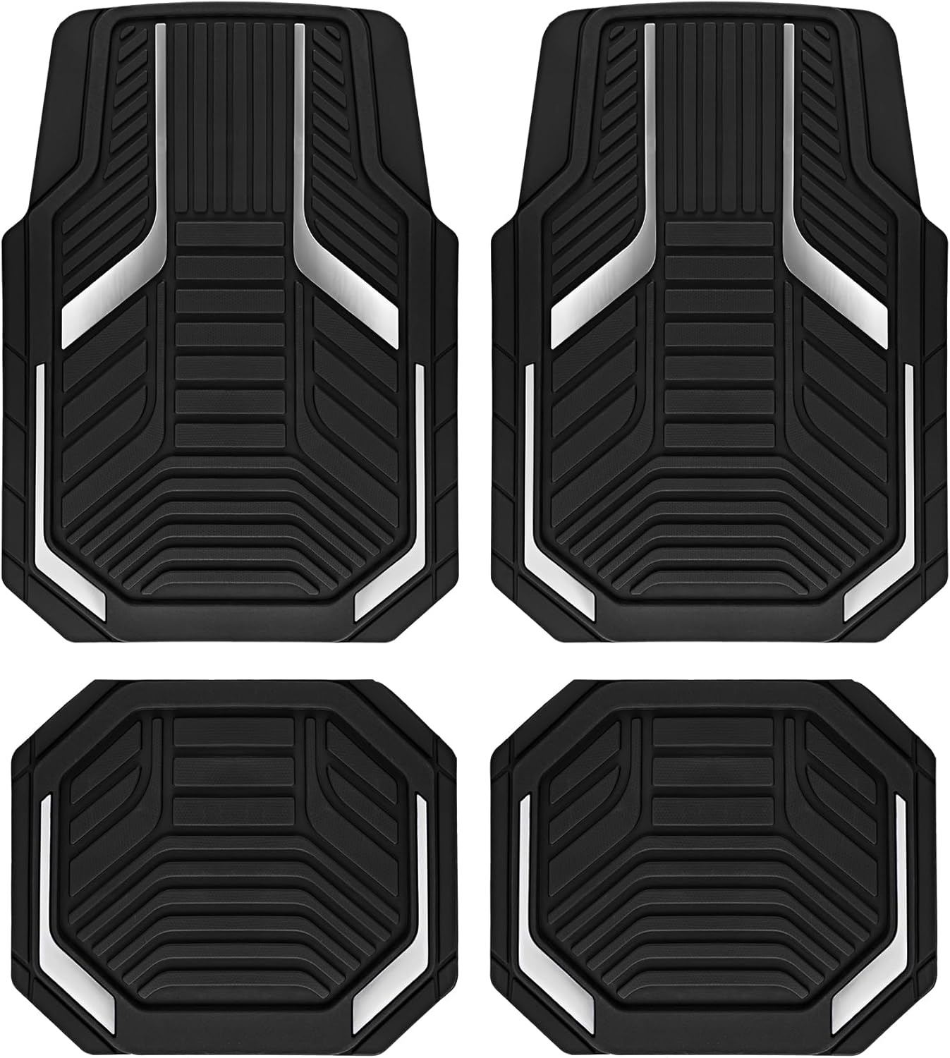 PIC AUTO Heavy Duty Rubber Floor Mats, Purple Aluminum Film Car Mats Set, Front and Rear Car Mats with Anti-Slip Backing, All Weather Protection, Trim-to-Fit for Automotive SUV, Sedan, Van
