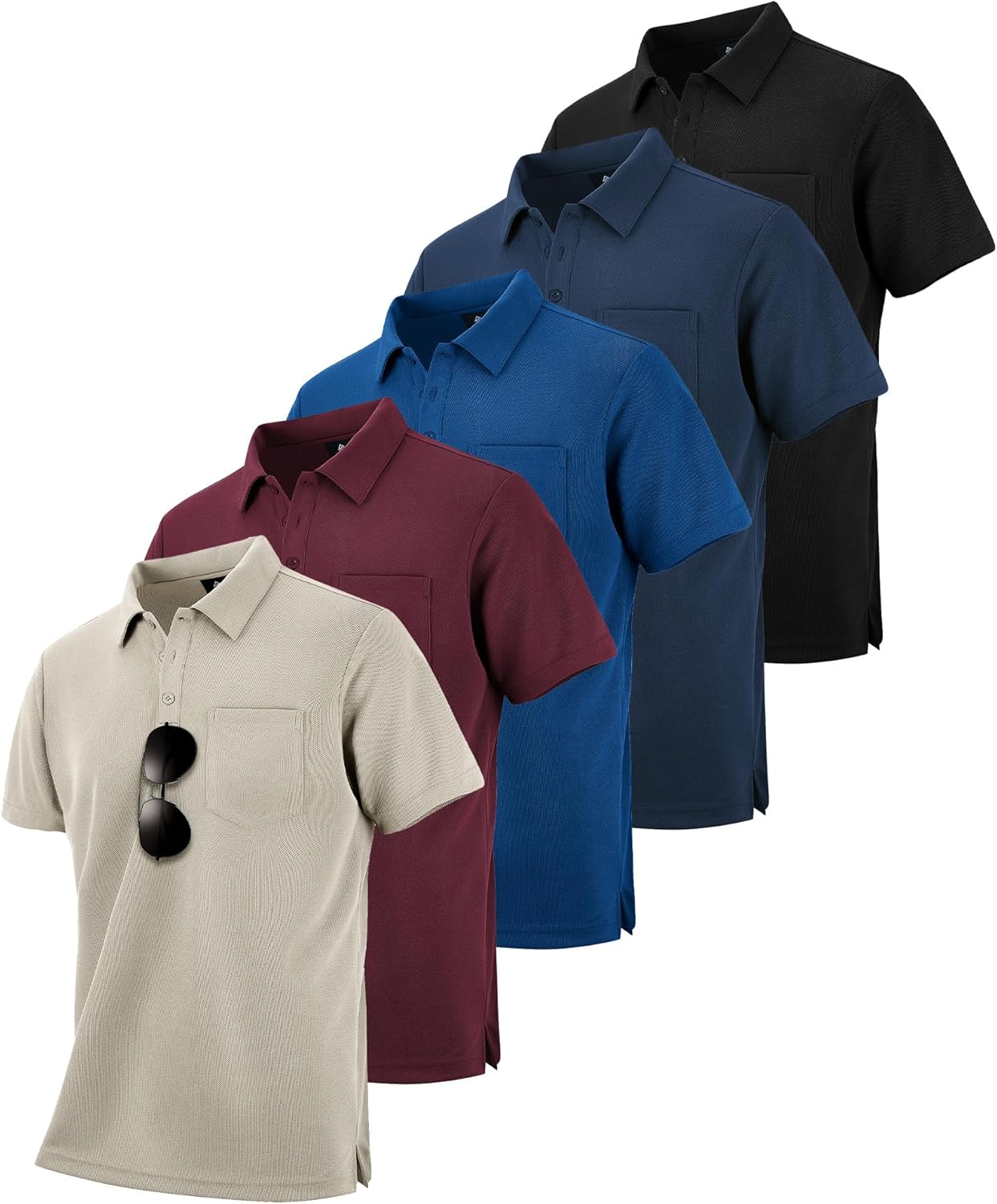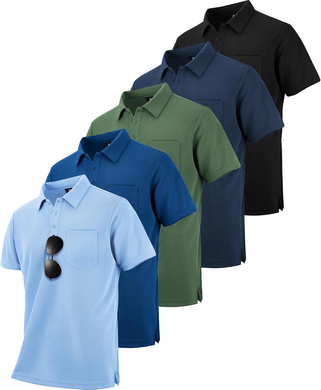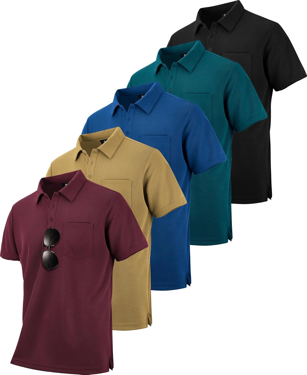 ZITY 5 Pack Polo Shirts for Men with Pocket Dry Quickly Short Sleeve Athletic Outdoor Work Collared Shirts