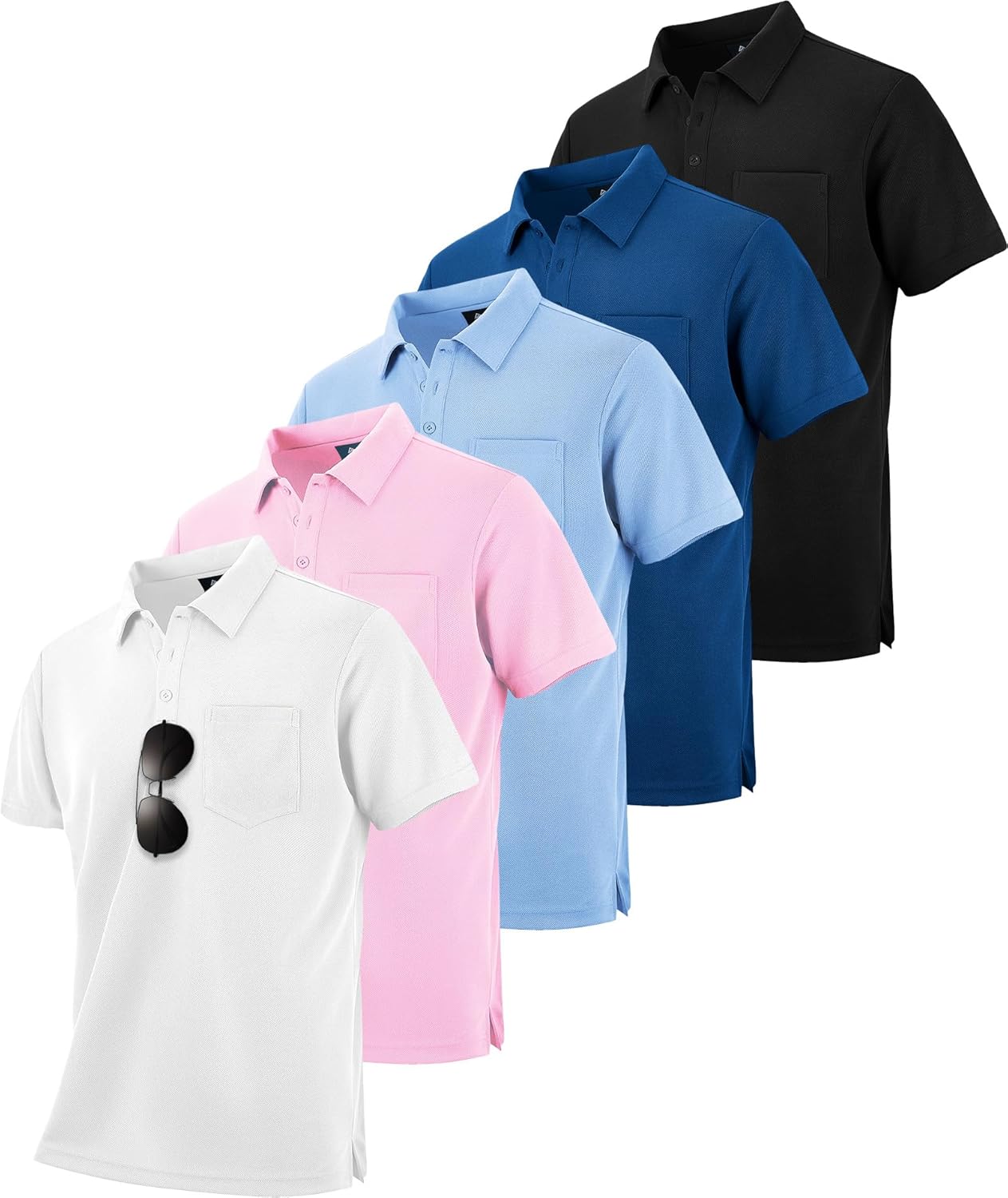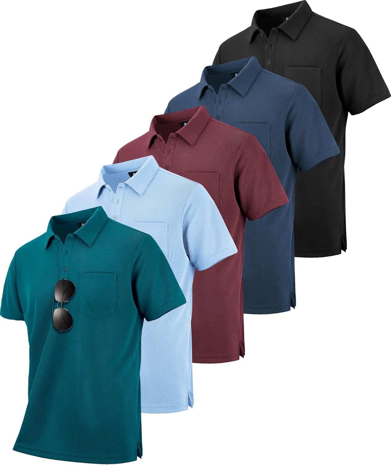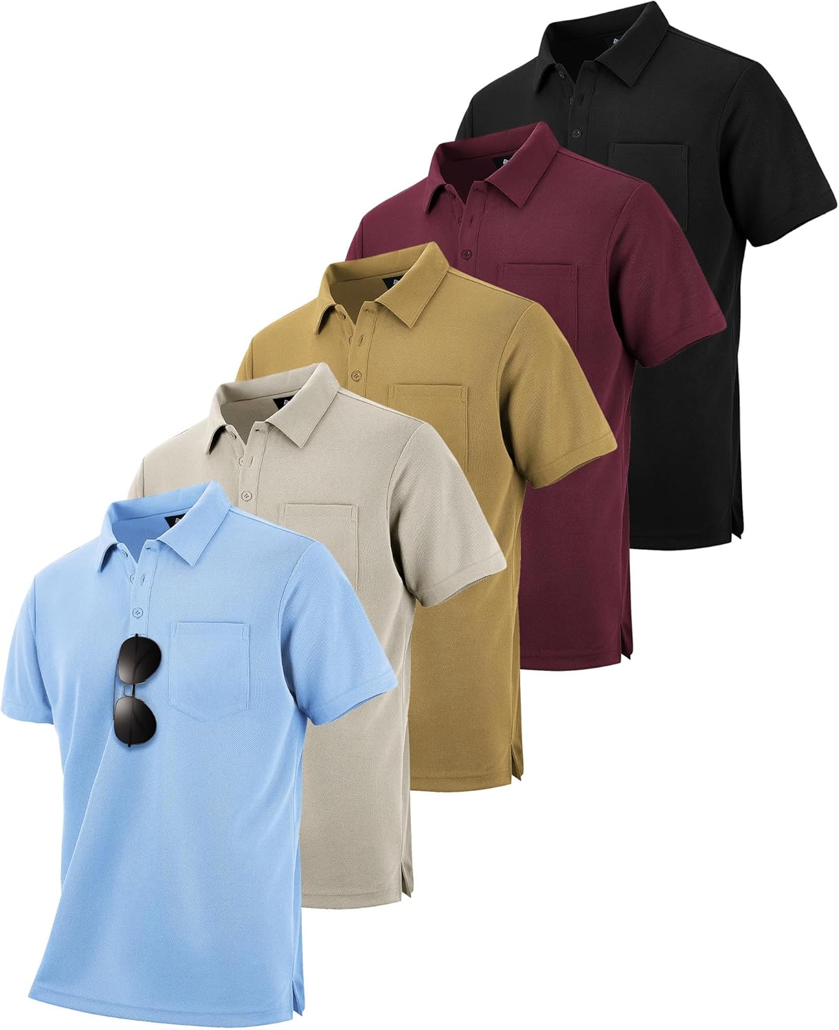 ZITY 5 Pack Polo Shirts for Men with Pocket Dry Quickly Short Sleeve Athletic Outdoor Work Collared Shirts