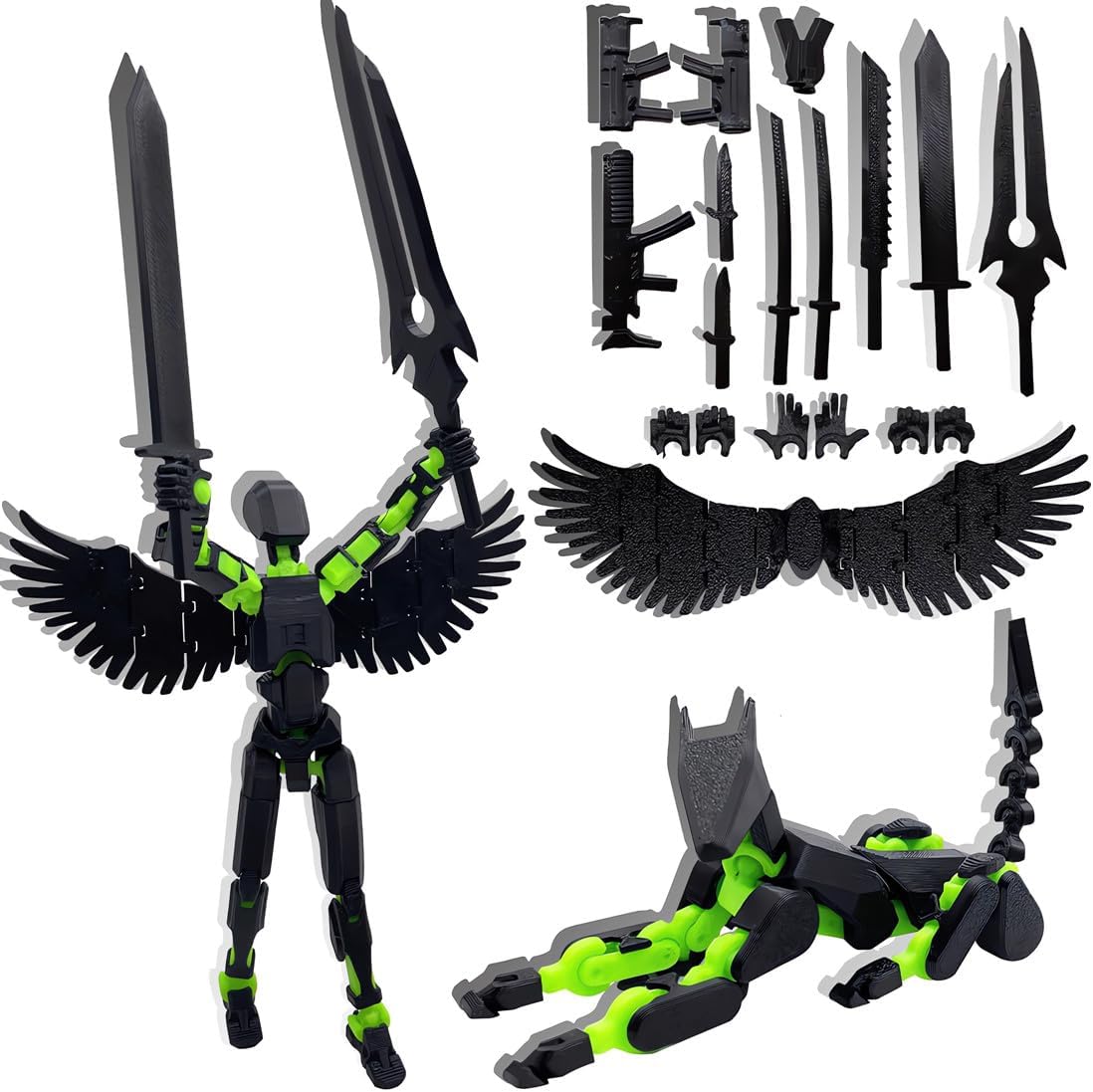 masijssa T13 3D Action Figures Set Titan 13 Action Figure Dummy 3D Printed Robo Multi-Jointed Movable Toy with Full Articulation for Collectors Desktop (Assembly Completed Black Blue Figure + Dog)