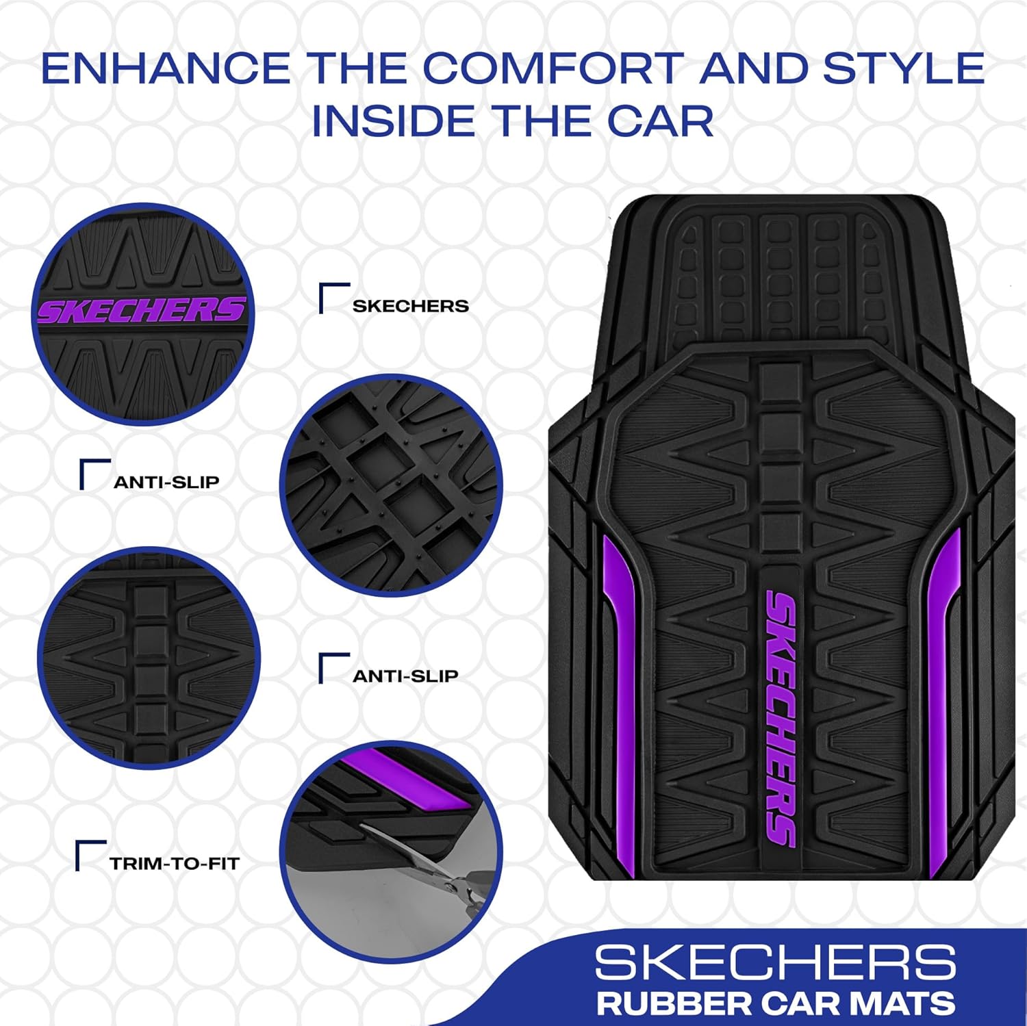 Skechers Car Floor Mats,Heavy Duty Rubber Car Mats Full Set,All Weather Floor Mats,Waterproof TrimTo Fit Universal Floor Liner Car Accessories,Automotive Floor Mats for Cars Trucks SUV,Purple