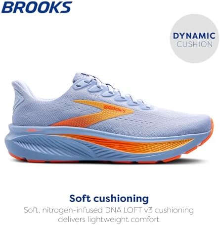 THIS WOMEN’S SHOE IS FOR: The Ghost 17 is for runners and walkers alike looking for an everyday companion that provides smooth, reliable comfort. Now featuring an extra 1mm of DNA LOFT v3 in the heel and 3mm in the forefoot to help every mile feel as good as the first. This Brooks Ghost 17 is a certified PDAC A5500 Diabetic shoe and has been granted the APMA Seal of Acceptance. The Ghost 17 is a certified carbon neutral product. Predecessor: Ghost 16. SOFT & DYNAMIC CUSHIONING: The Ghost 17 offers neutral support with premium nitrogen-infused DNA Loft v3 cushioning to deliver lightweight softness and feel-good comfort after every mile. Ideal for road running, walking, cross training, travel, and the gym. SMOOTH TRANSITIONS: The newly designed midsole incorporates precise flex grooves that enhance the shoe's ability to promote smooth transitions. This innovative feature allows for a more natural flow during toe-off, enabling runners to maintain speed and momentum with ease. COMFORT & BREATHABILITY: The double jacquard air mesh upper provides premium comfort and breathability, while the kick-back collar adds support and structure. This design ensures optimal airflow, keeping your feet cool and dry during intense activities, while adapting to your foot’s natural movements for a comfortable snug fit. RUBBER OUTSOLE: The innovative rubber compound, crafted with recycled silica, offers a perfect balance of durability, lightweight performance, and responsive rebound, making it ideal for any terrain.