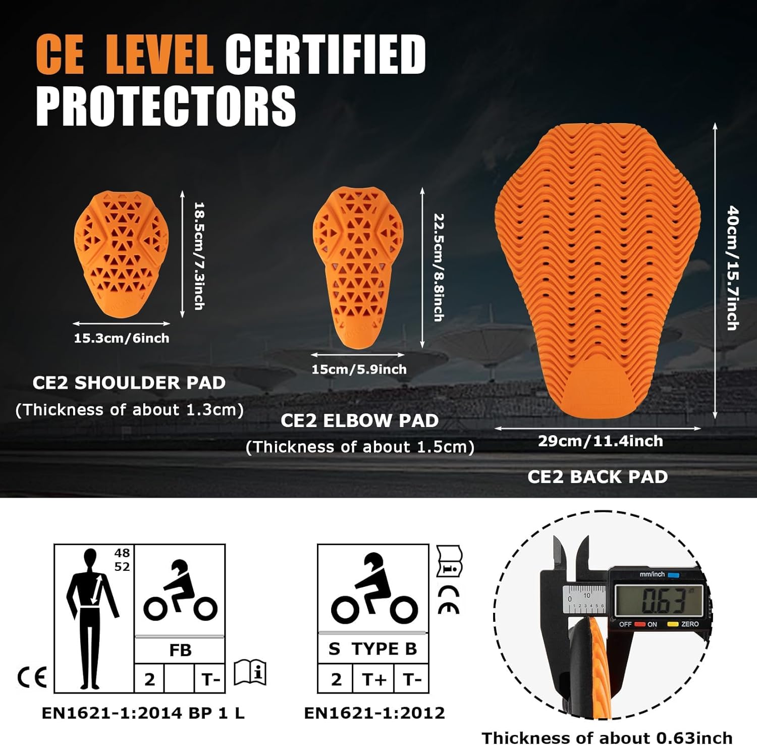 PSLER Full CE Level 2 Certified Motorcycle Armor Back Pad, Elbow and Shoulder Protection Pads Set for Motorcycle Jackets, 5PCS