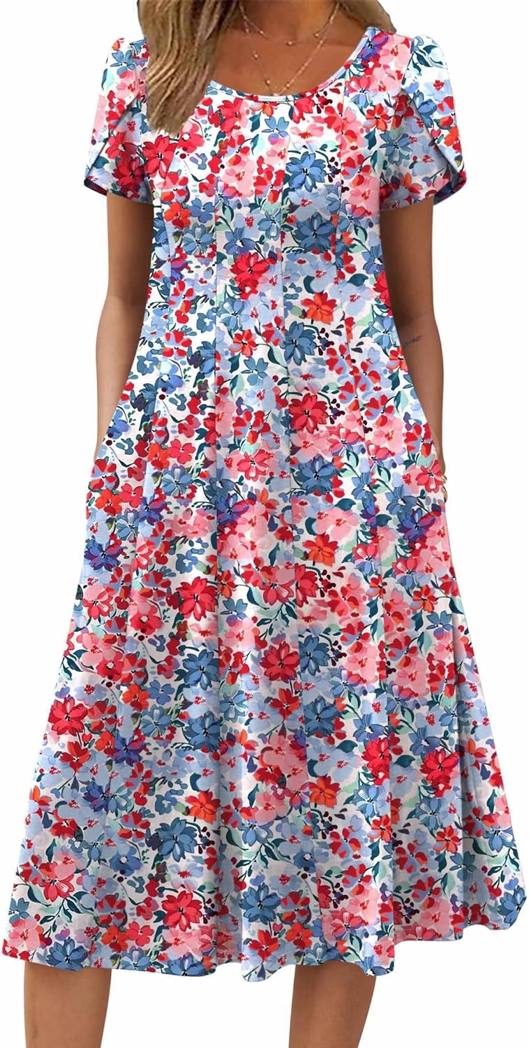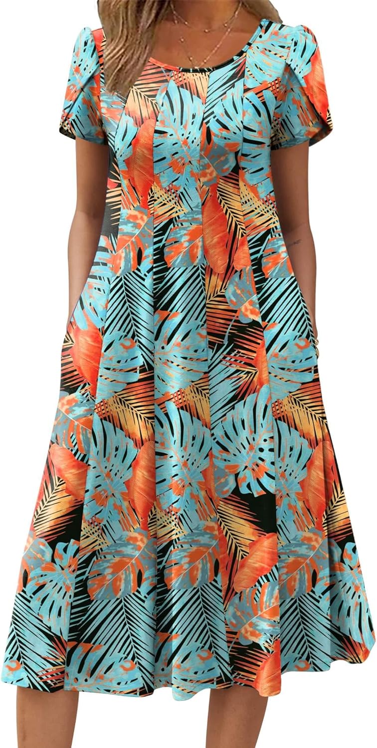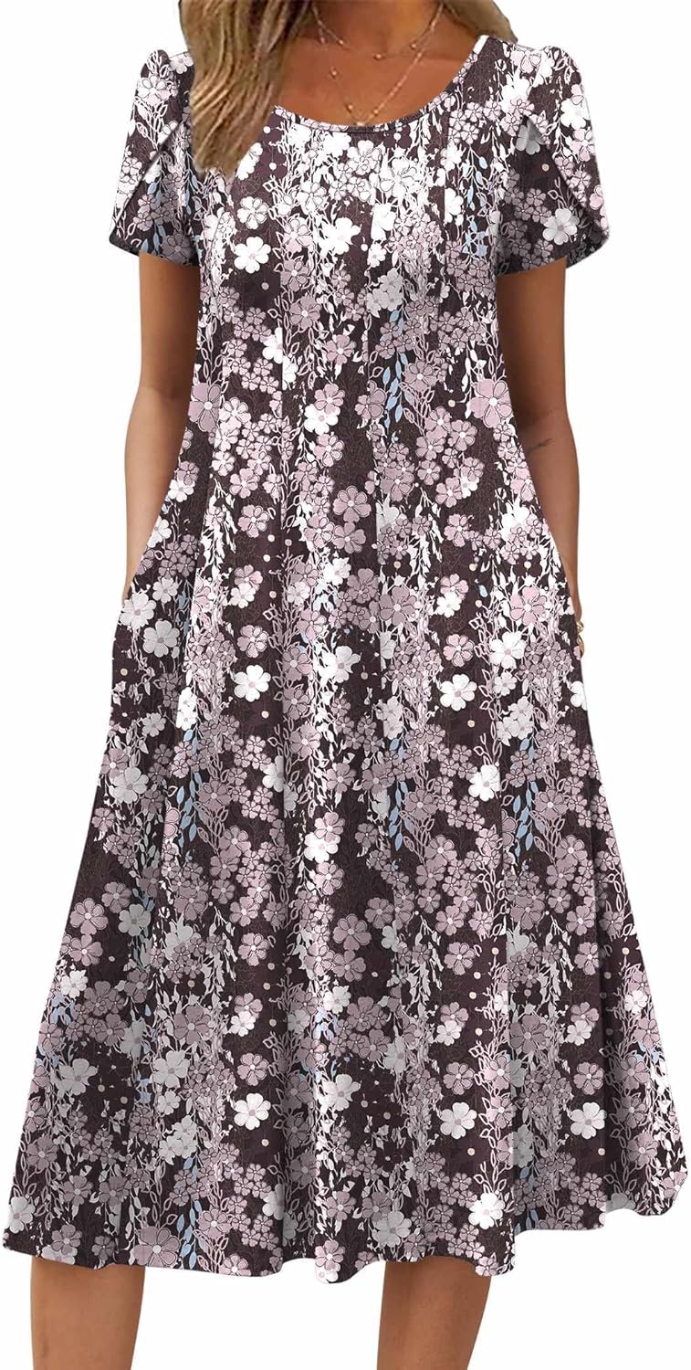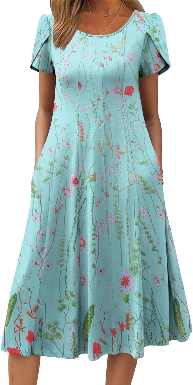 ZEAGOO Womens Casual Dresses for Summer Short Sleeve Flare Midi Dress Loose Flowy Beach Sundress