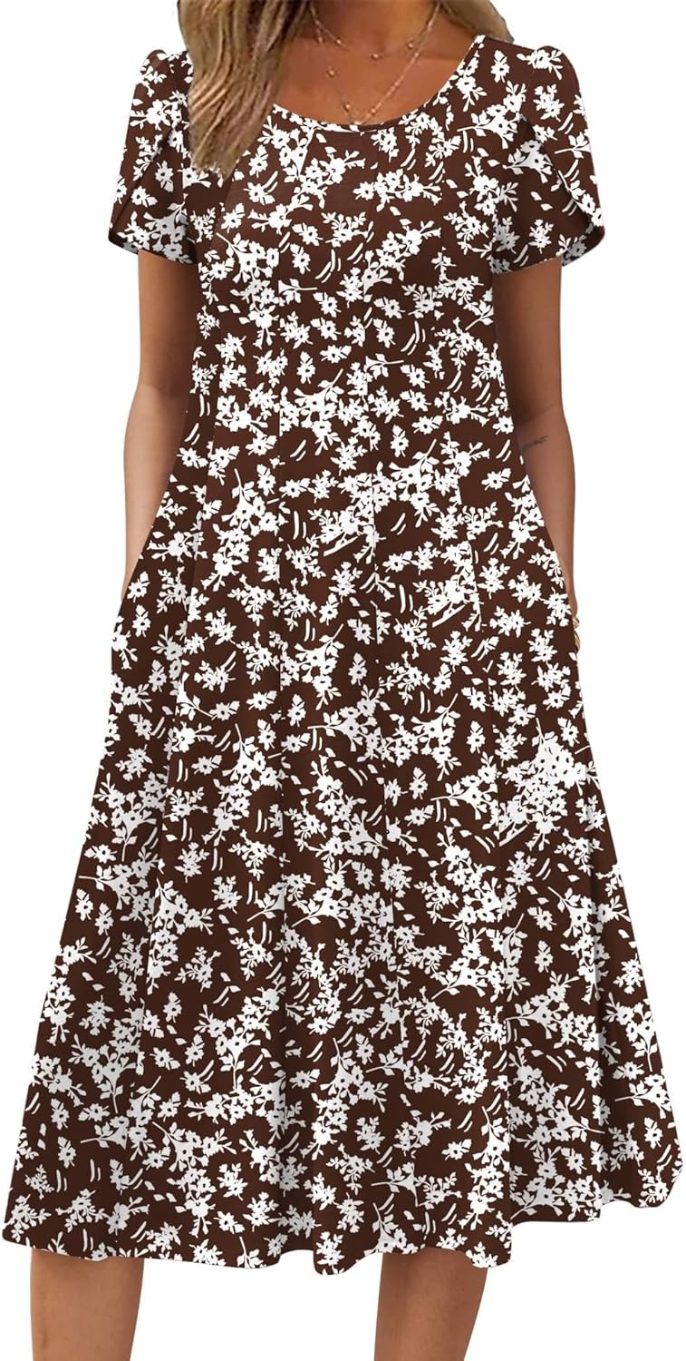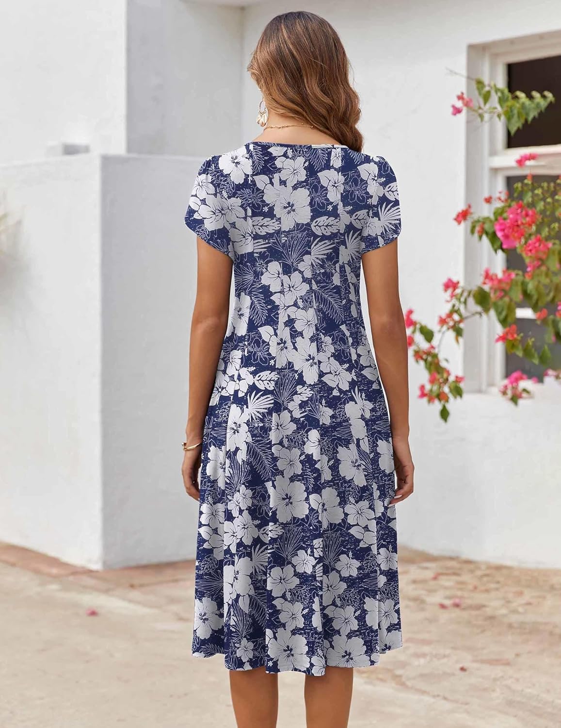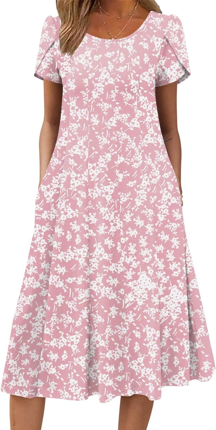 ZEAGOO Womens Casual Dresses for Summer Short Sleeve Flare Midi Dress Loose Flowy Beach Sundress