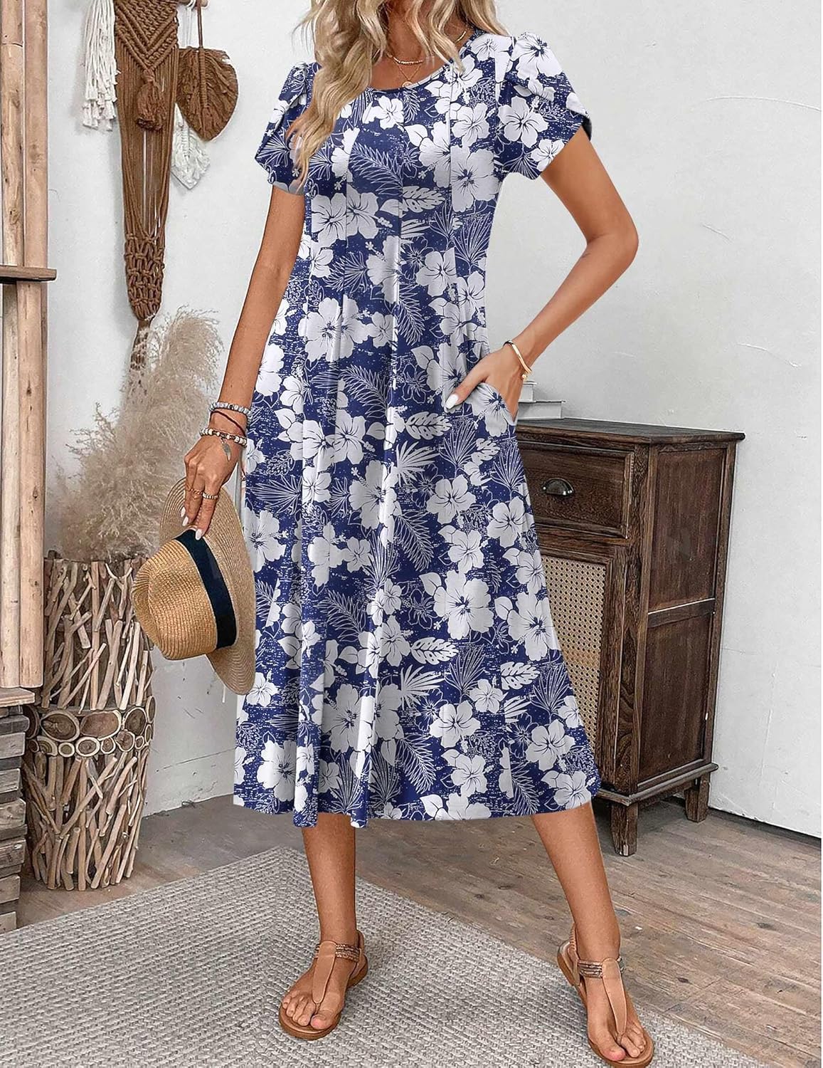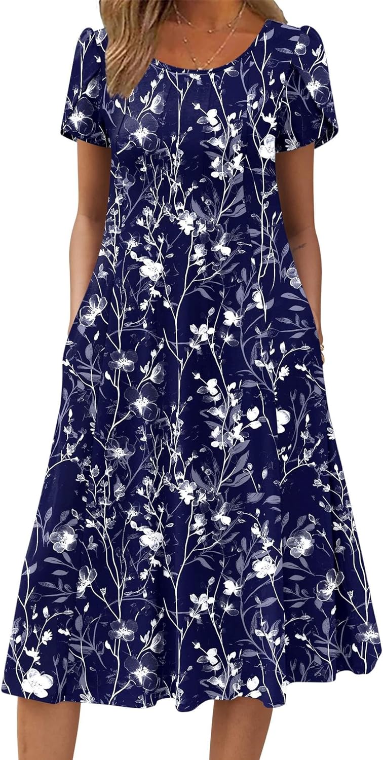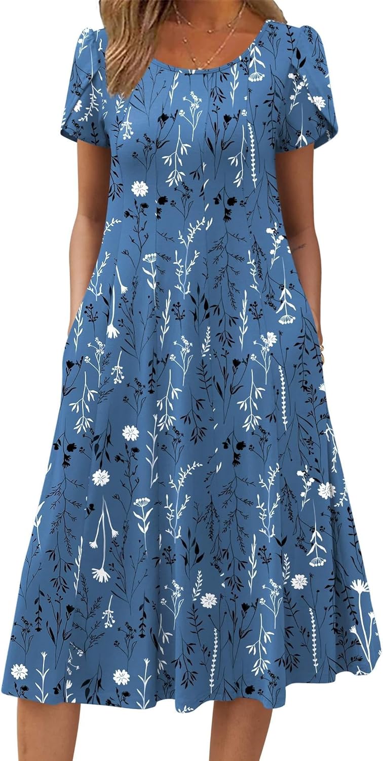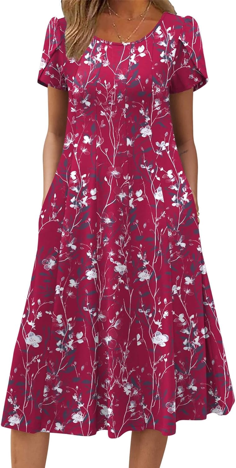 ZEAGOO Womens Casual Dresses for Summer Short Sleeve Flare Midi Dress Loose Flowy Beach Sundress