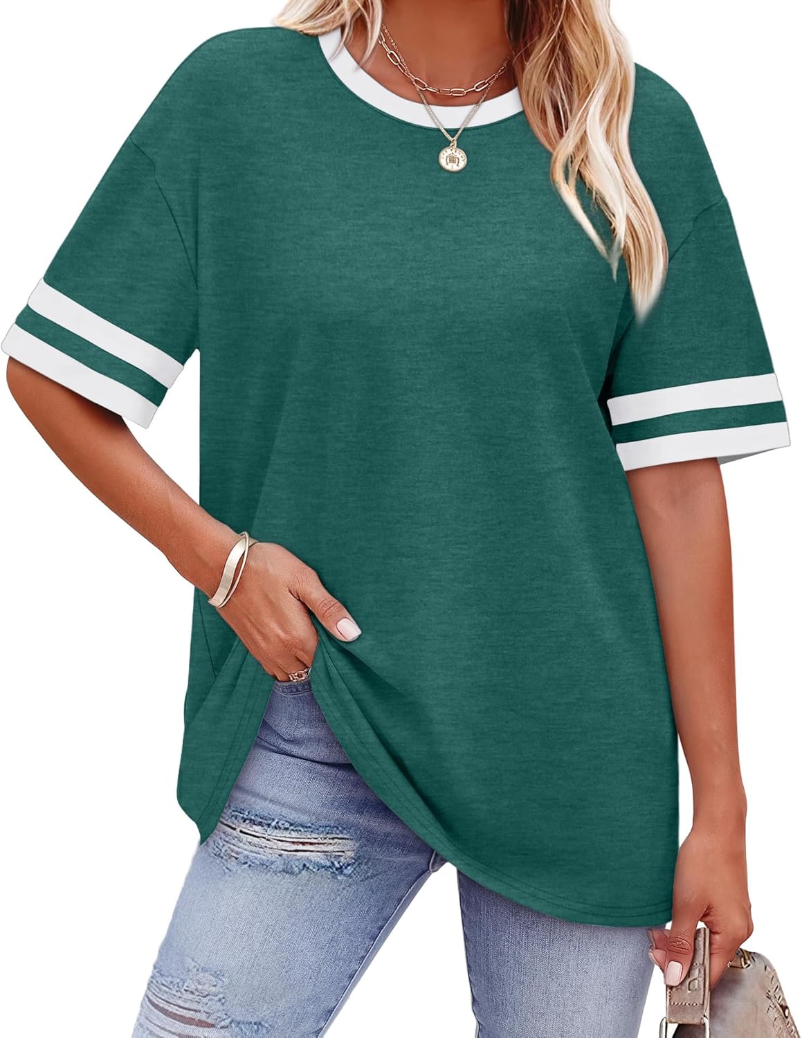 WIHOLL Womens T Shirts Loose Fit Short Sleeve Tees Crew Neck Color Block Summer Tops 2026 Fashion