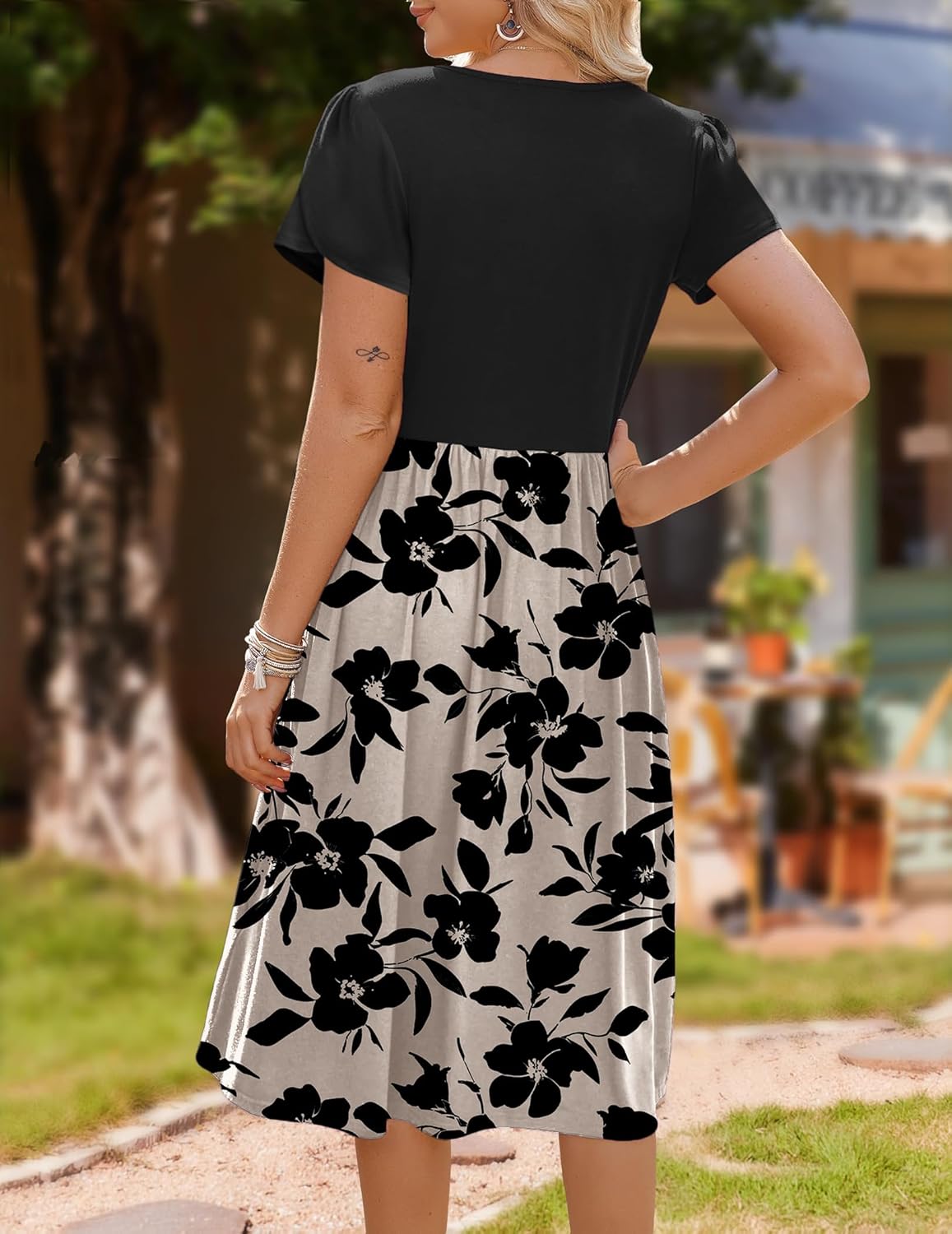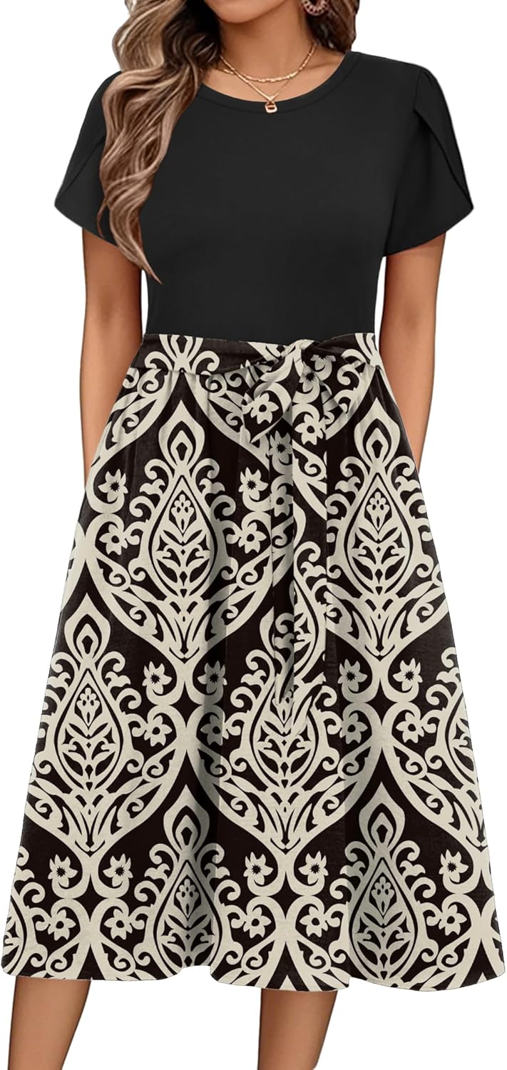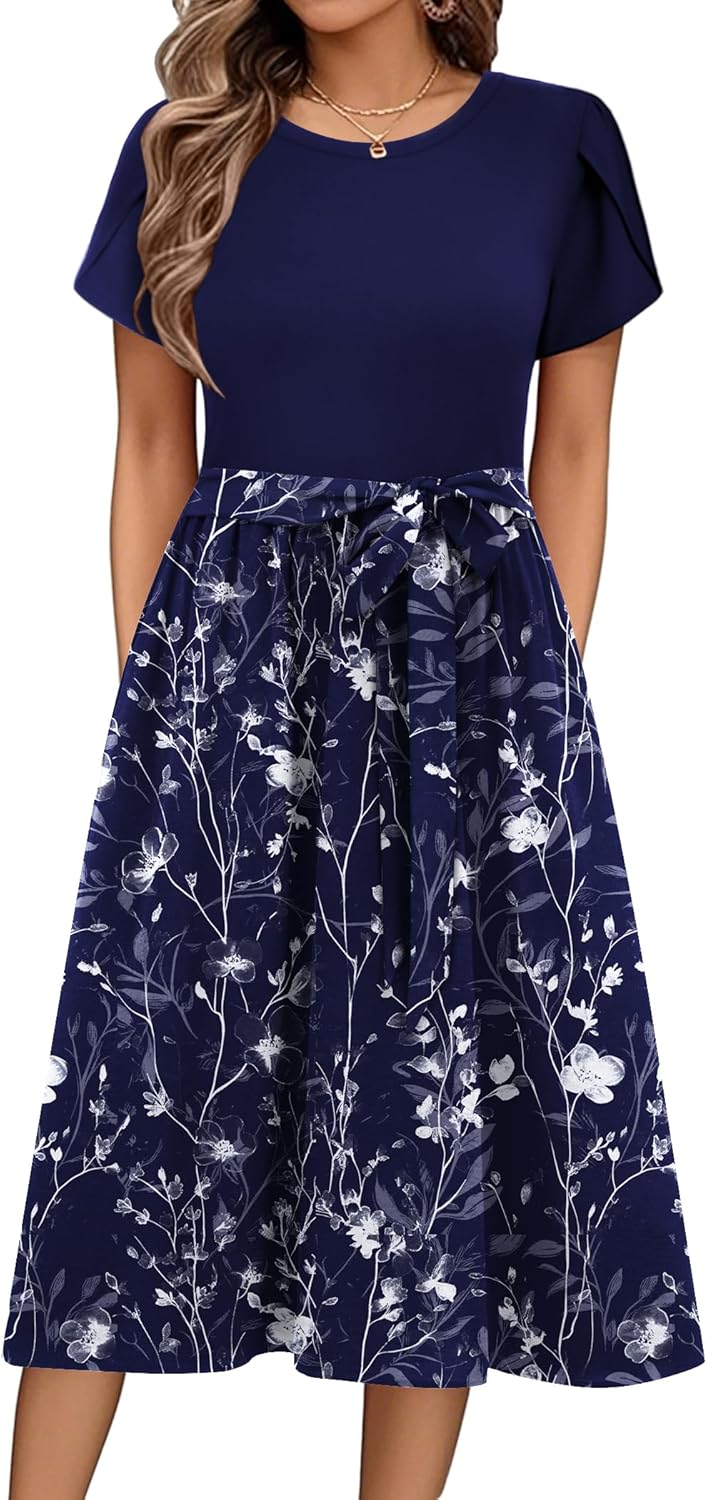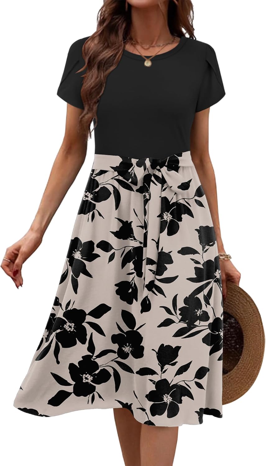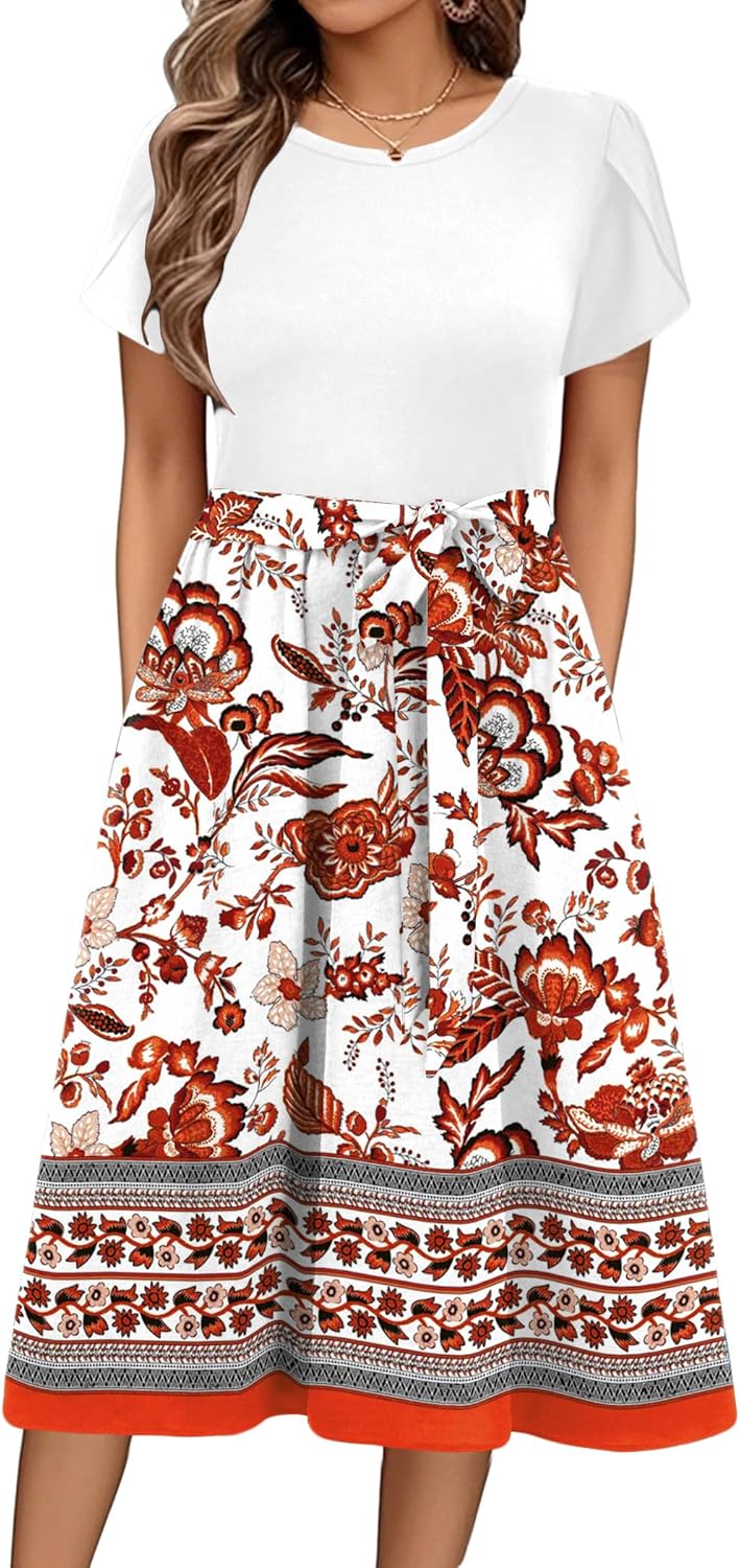 Zeagoo Womens Midi Dress Summer Short Sleeve Dress with Pockets 2025 Casual Floral T-Shirt Dress Flowy Beach Sundress