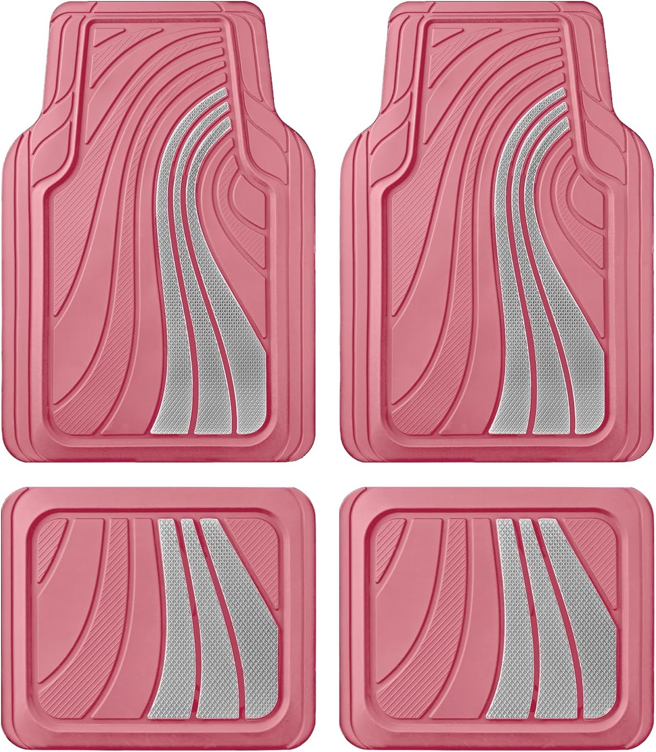 Road Comforts Car Floor Mats Full Set \u2013 Front & Rear Car Floor Mats with Aluminum Design, Anti-Slip Backing, All-Weather Protection, Trim-to-Fit Car Mats for Most Sedans, SUVs & Vans - Gl