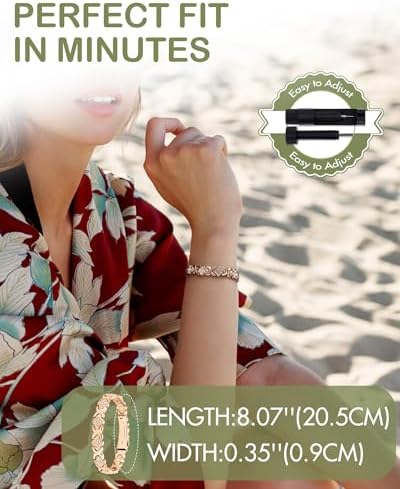 ENHANCED STRENGTH: This copper bracelets for women boasts neodymium magnets, the most powerful available at 3800 gauss. EFFORTLESS CONVENIENCE: The upgraded folding clasp makes it a breeze to put on and take off the bracelet with just a light press on both sides. No more accidental losses! EMBRACE LUCK AND LOVE: This magnetic bracelets for women seamlessly blends a four-leaf clover with an infinity symbol, embellished with sparkling cubic zirconia. It's a timeless piece symbolizing endless luck and love. ADJUSTABLE & COMFORTABLE: Arriving at 8.07"(20.5cm) long & 0.35"(0.9cm) wide, this copper magnet bracelet comes with a sizing tool for a customized fit. Made from 99.99% solid copper, it's hypoallergenic, lead and nickel-free. THE PERFECT GIFT: Surprise your loved ones with a luxurious bracelet that combines style and function. Comes in an elegant gift box, making it the ideal gift for friends and family.