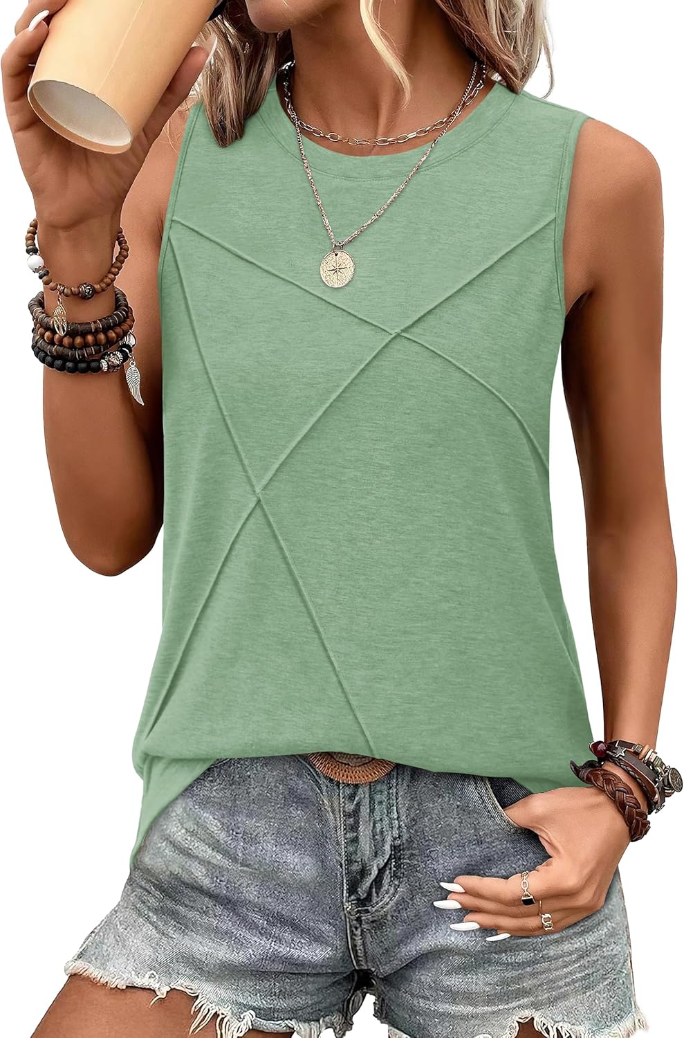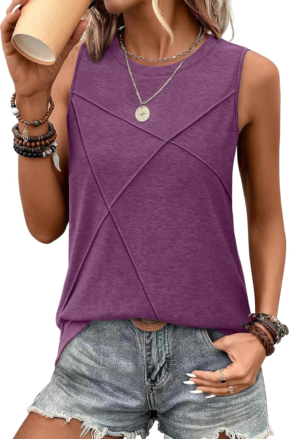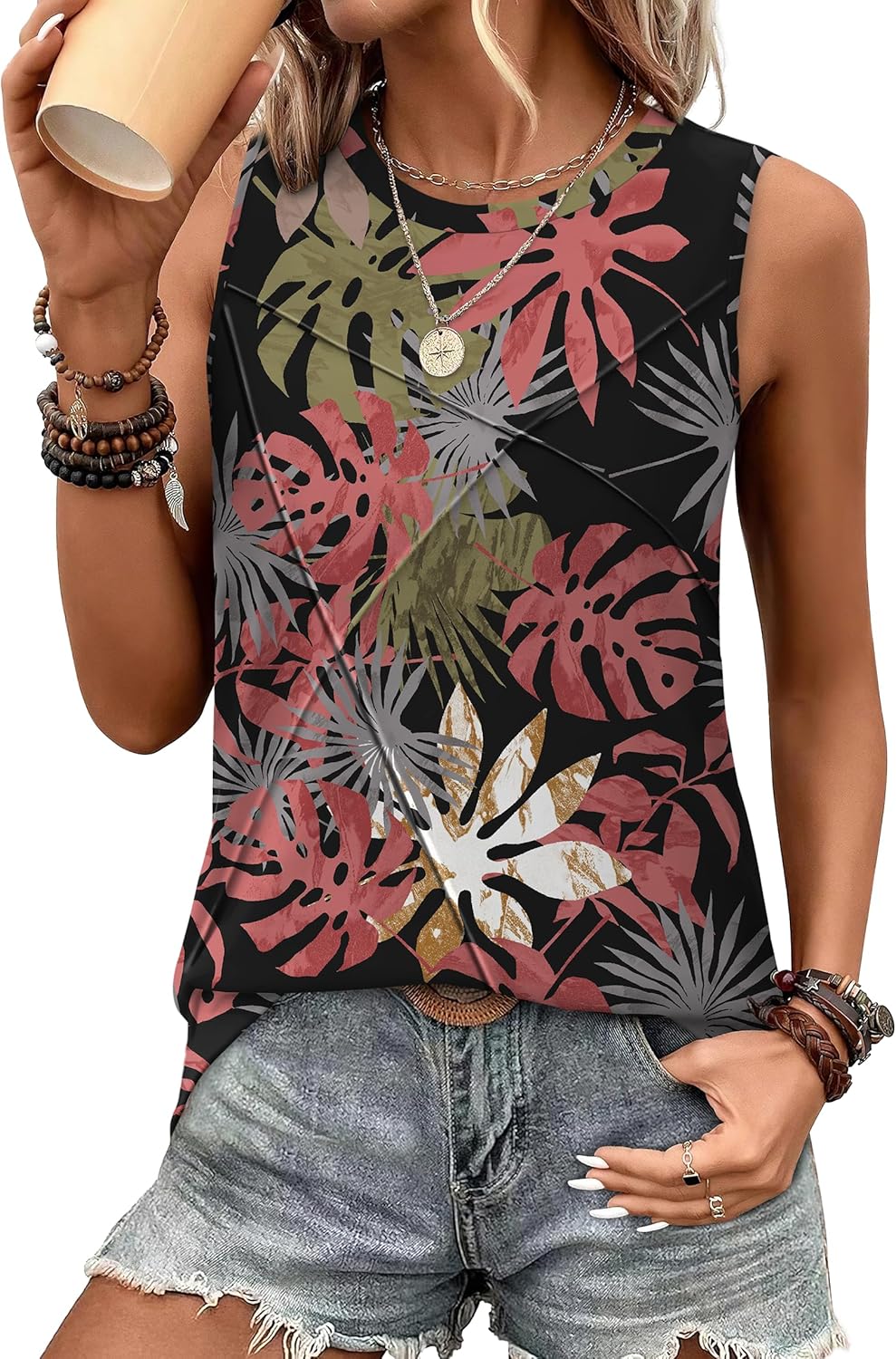 WIHOLL Women's Sleeveless Summer Crewneck Loose Fit Tank Tops