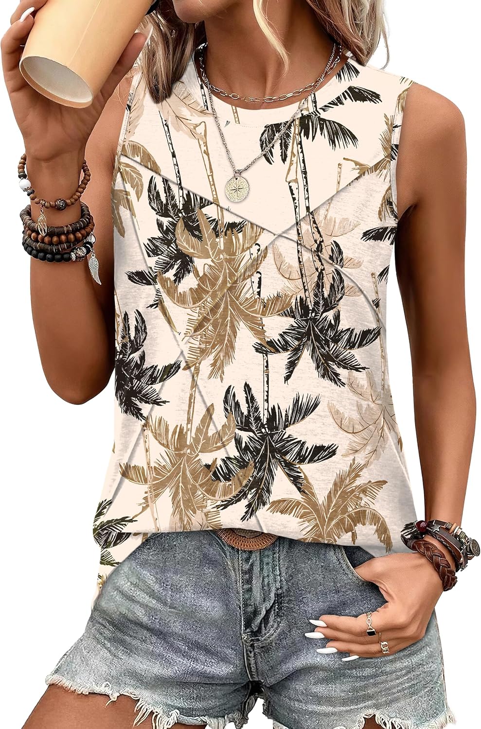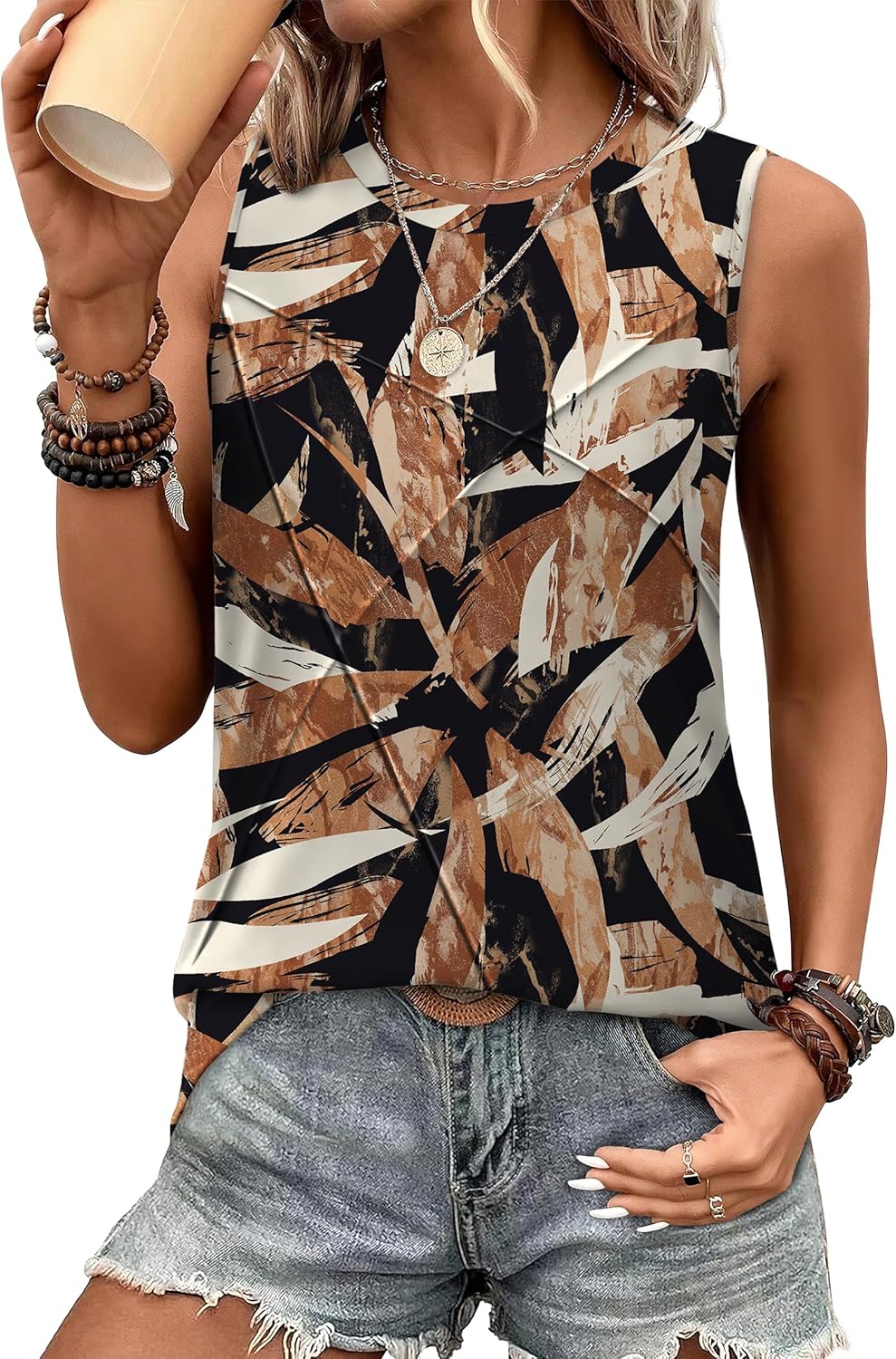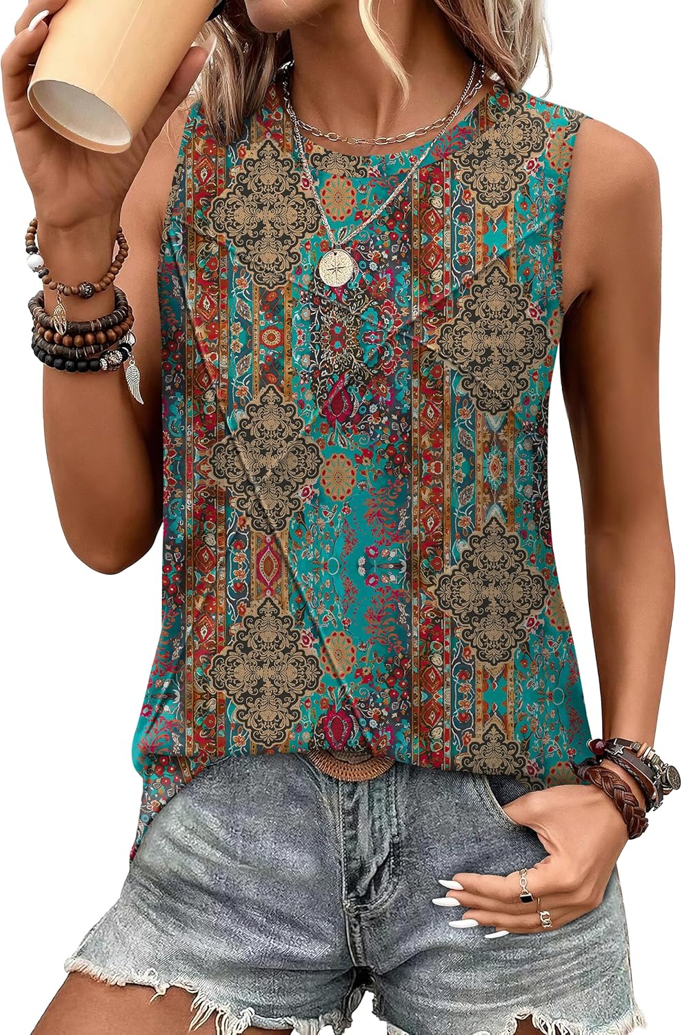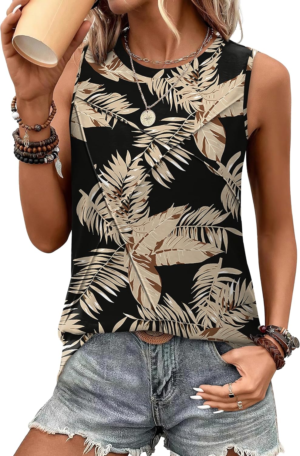 WIHOLL Women's Sleeveless Summer Crewneck Loose Fit Tank Tops