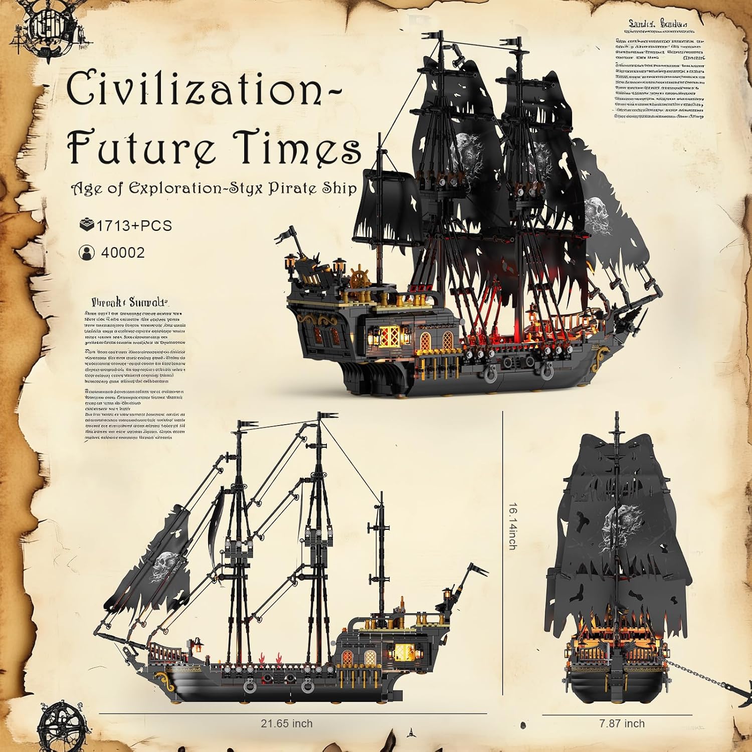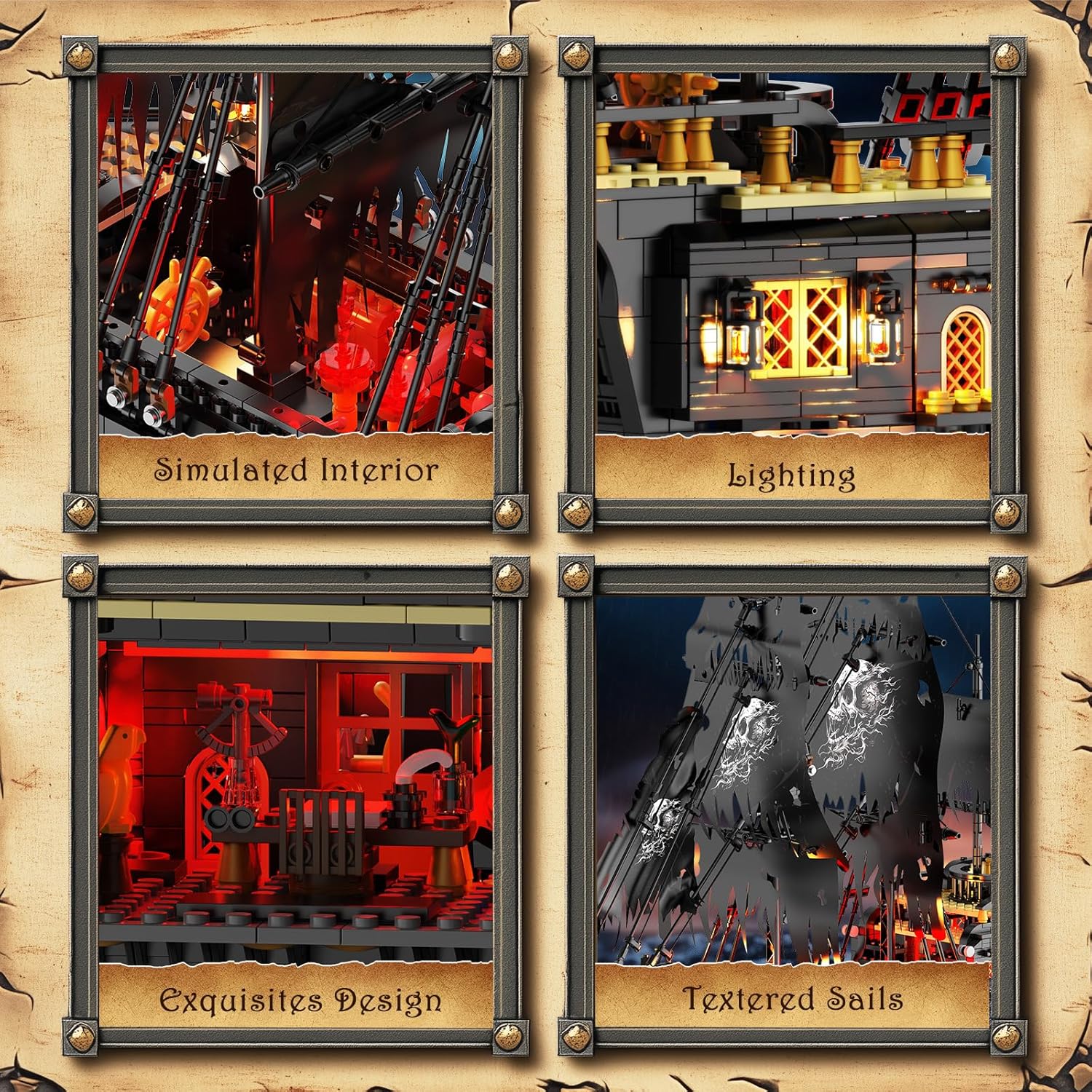 JMBricklayer Pirate Ship Building Toys with Lights, Pearl Pirate Ship Model Boat Kit 40002, Black Ship Toy Building Sets for Adult Teens 14+, Home Office Decor Valentines Gifts(1713 PCS) New Upgrade