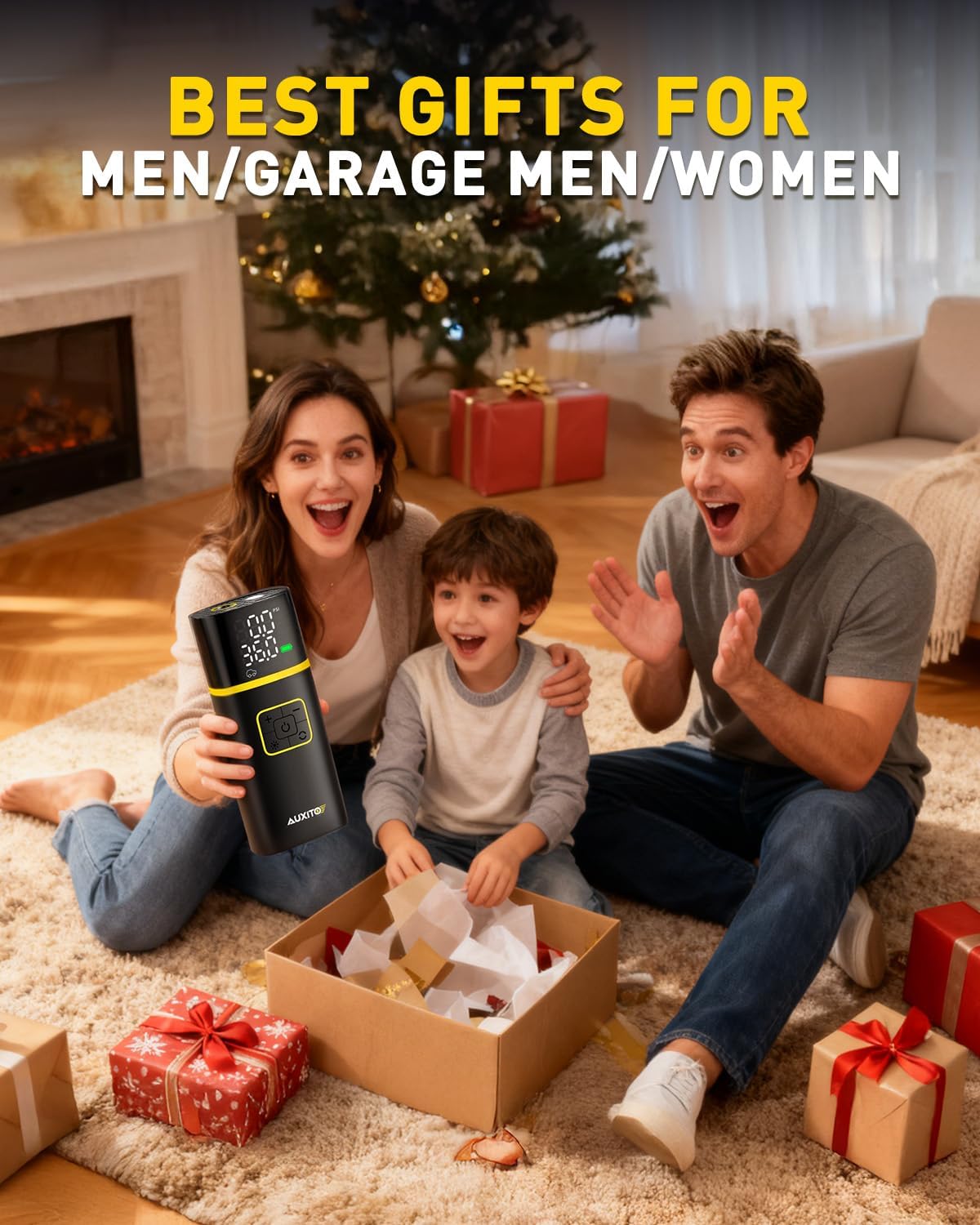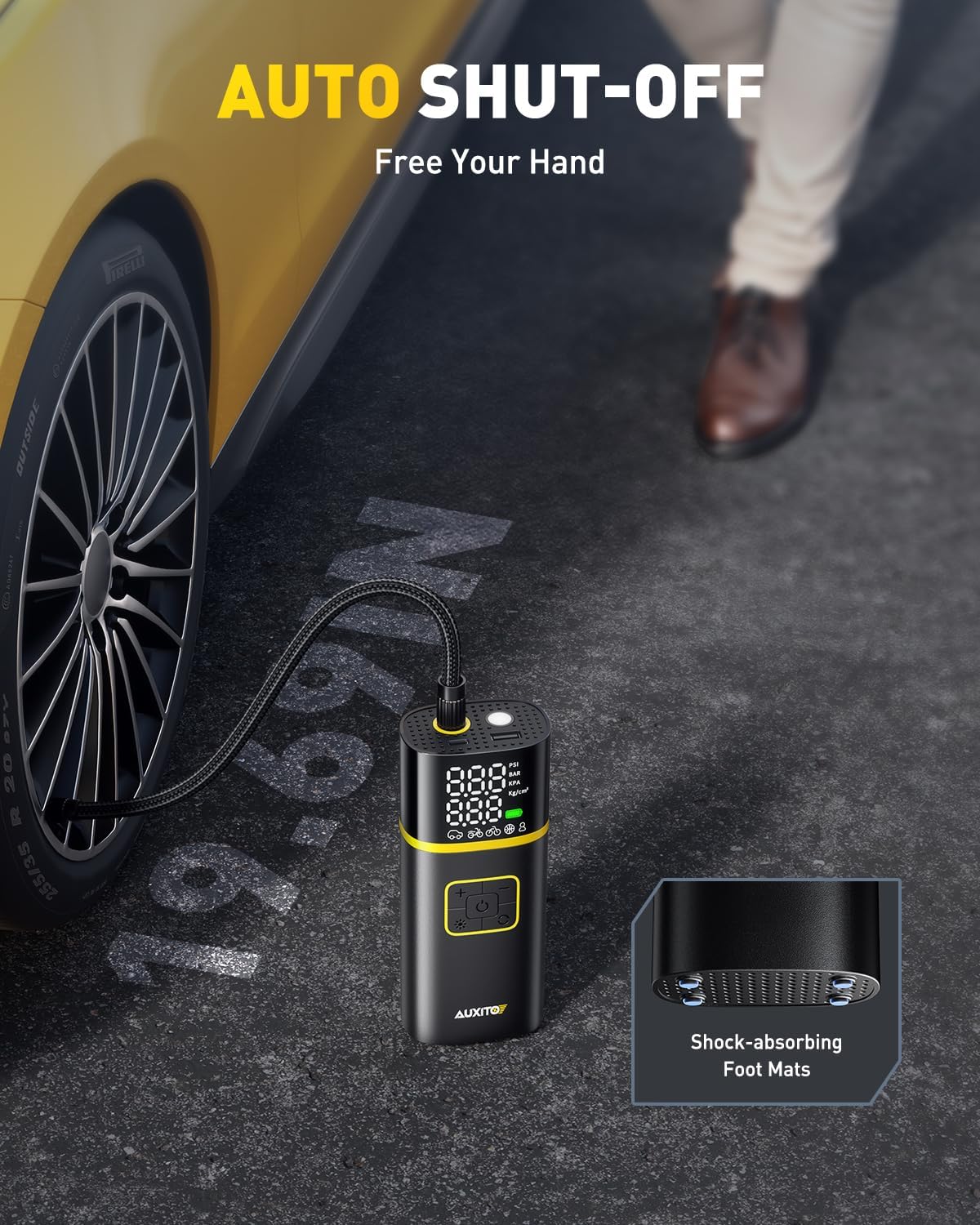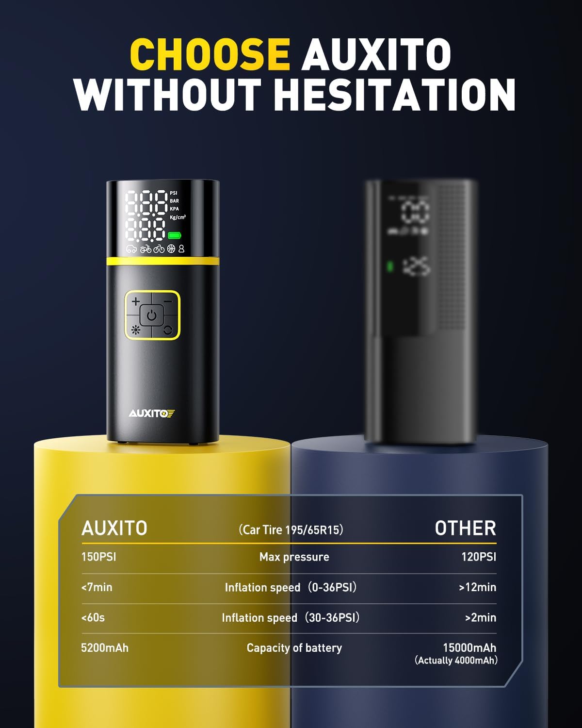 AUXITO AS1 Tire Inflator Portable Air Compressor - 150PSI Bike Pump 1Min Fast Inflate with Tire Pressure Gauge, 5200 mAh, LED Light, Car Accessories Air Pump for Auto, Moto, Bike Car Gifts for Men