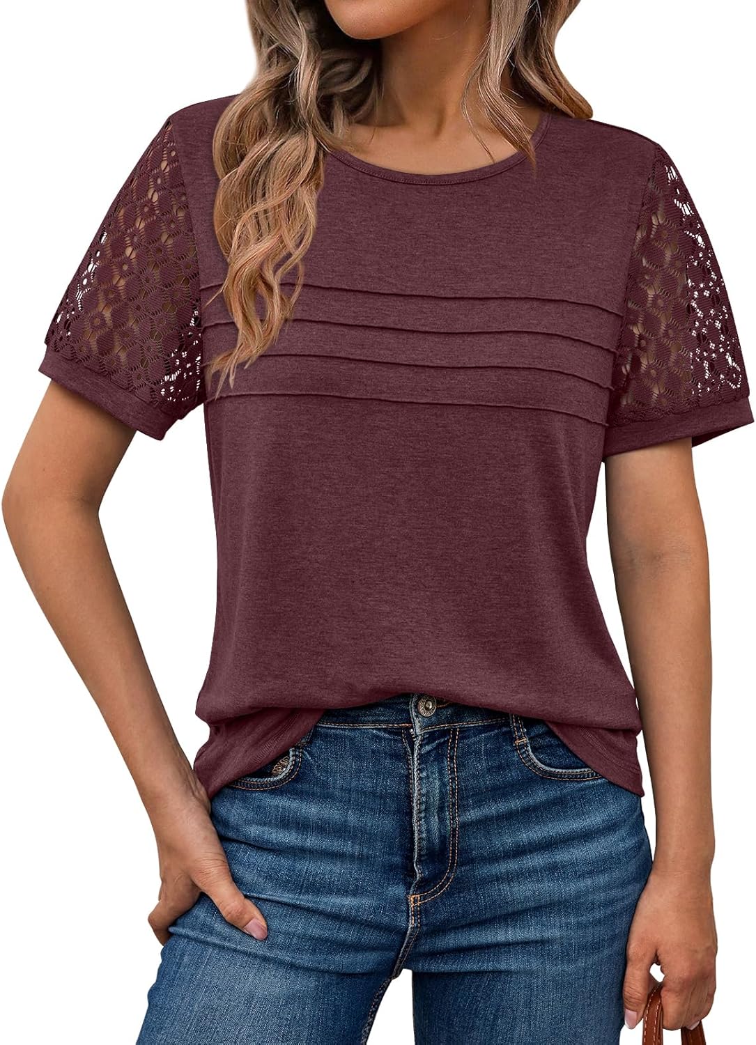 AUTOMET Women's Short Sleeve Shirts Dressy Lace Summer Tops 2026 Spring Trendy Casual T-Shirts Cute Work Outfits Blouses