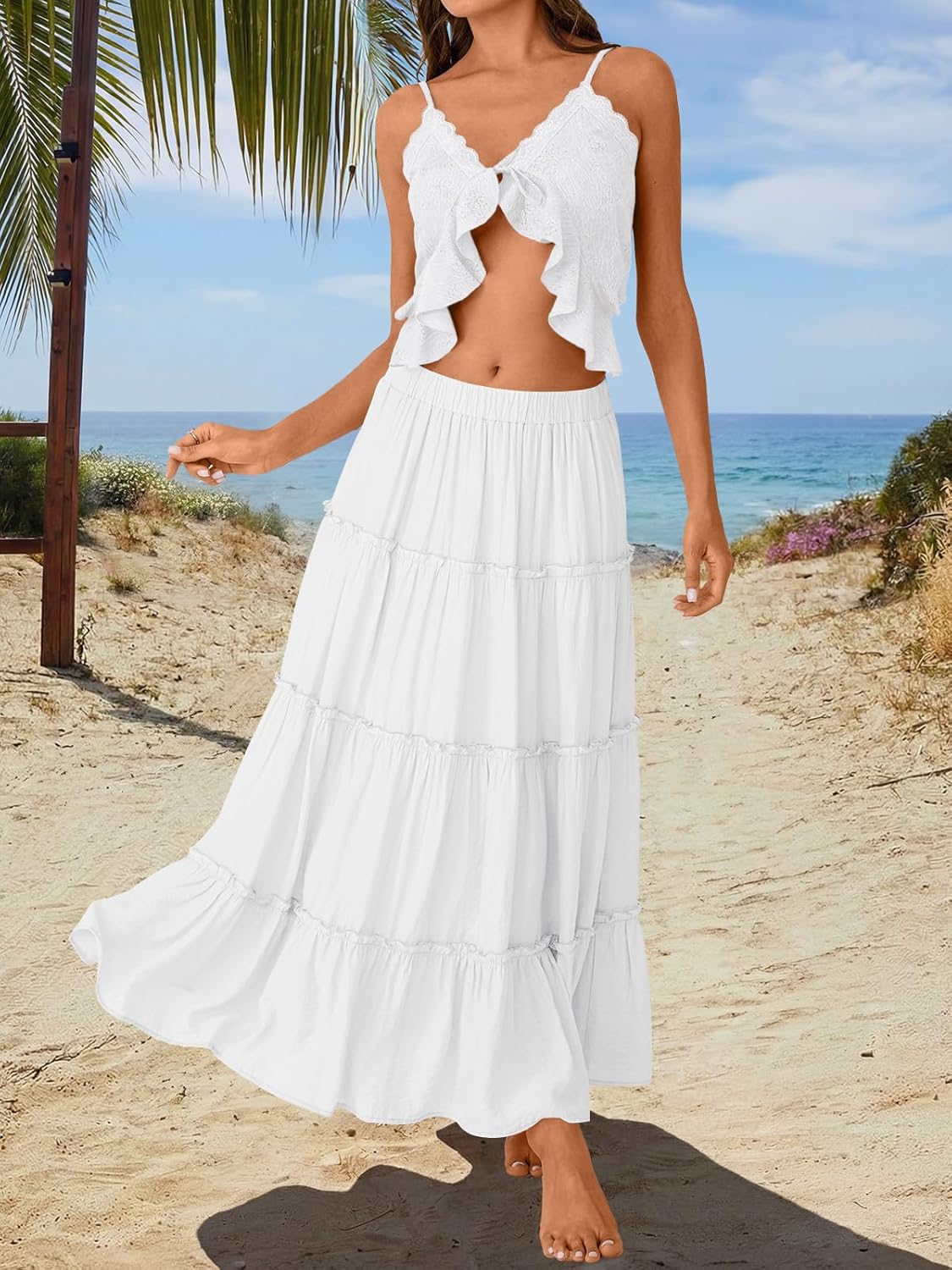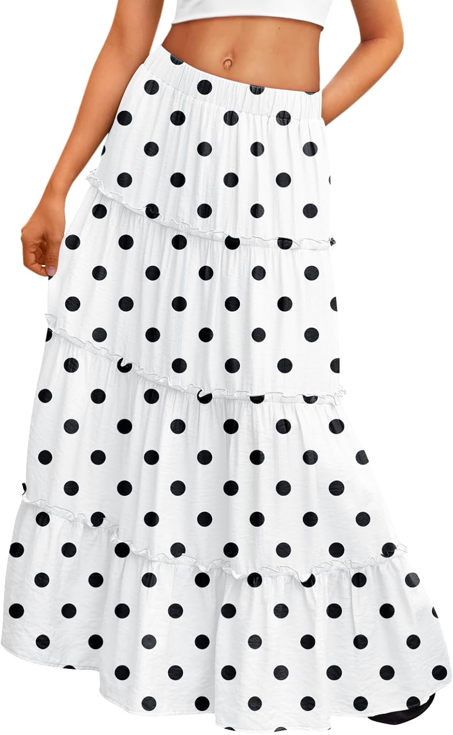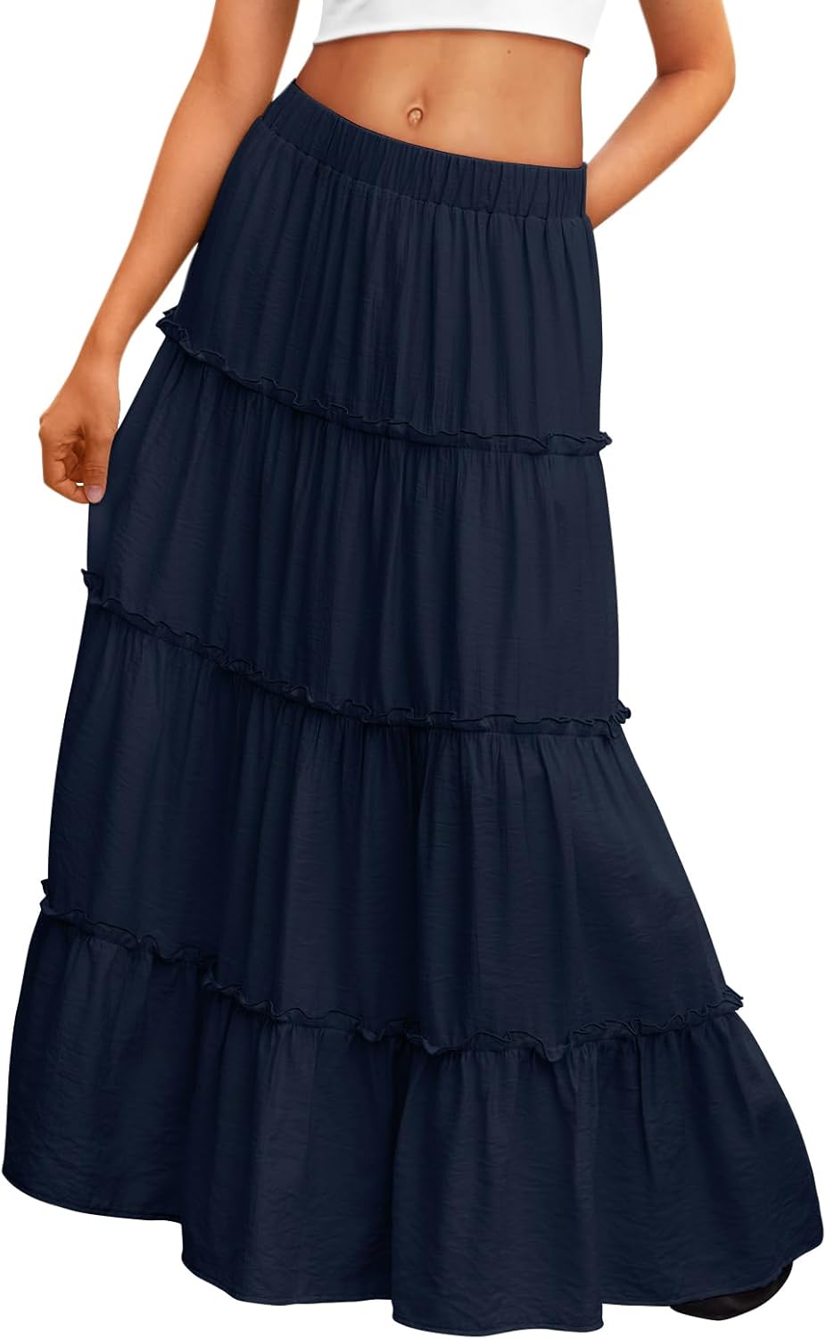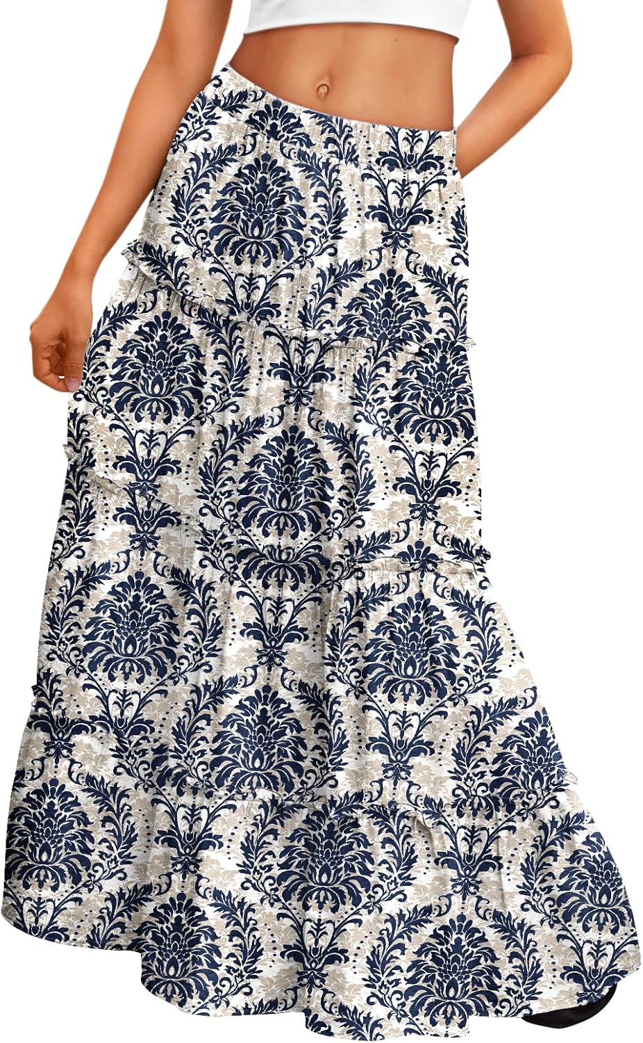 Trendy Queen Vacation Outfits Long Skirts for Women Boho Maxi Skirt Elastic High Waist Dress with Pockets Fashion