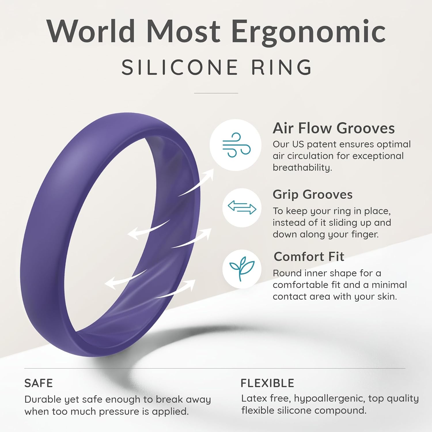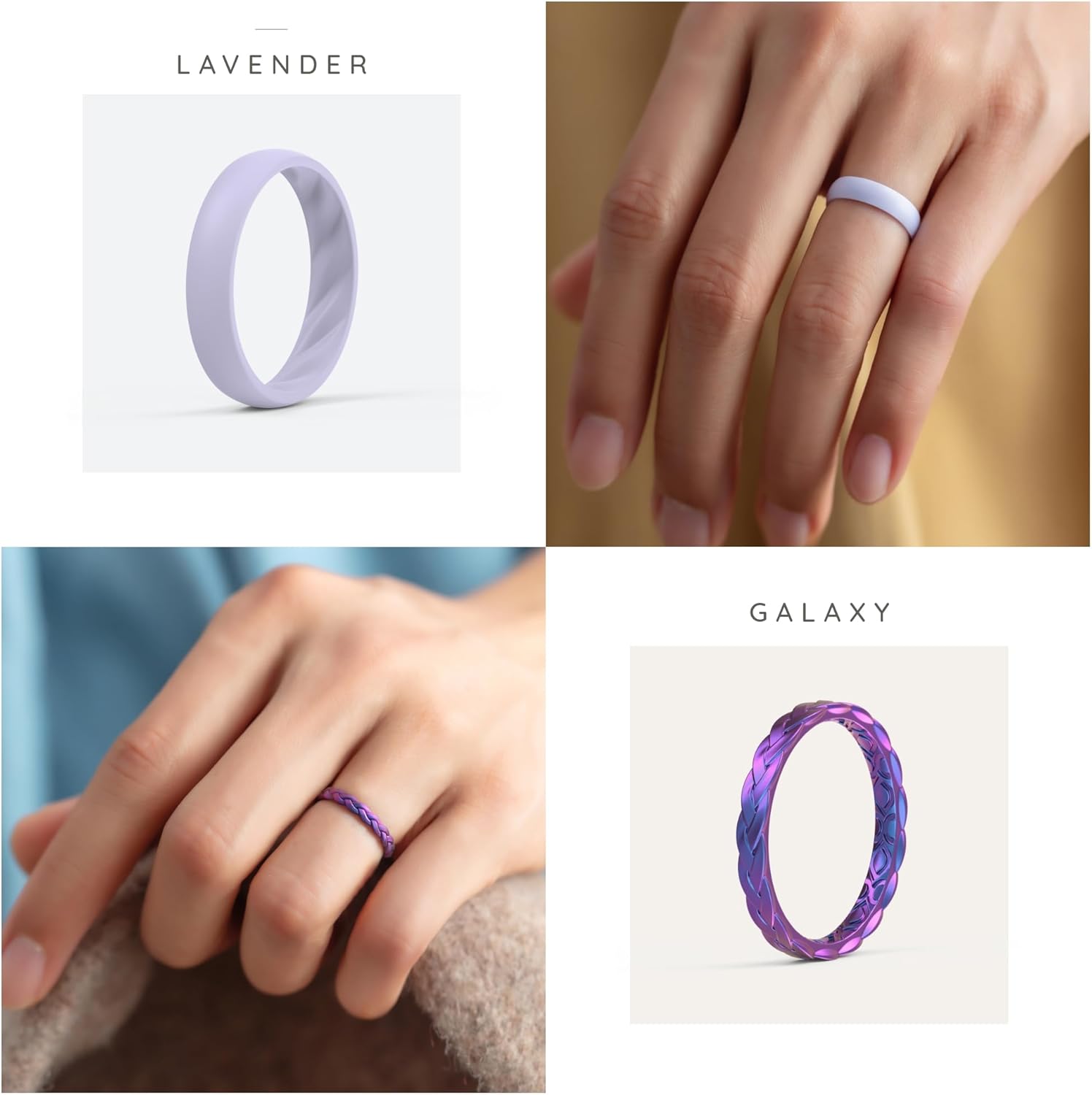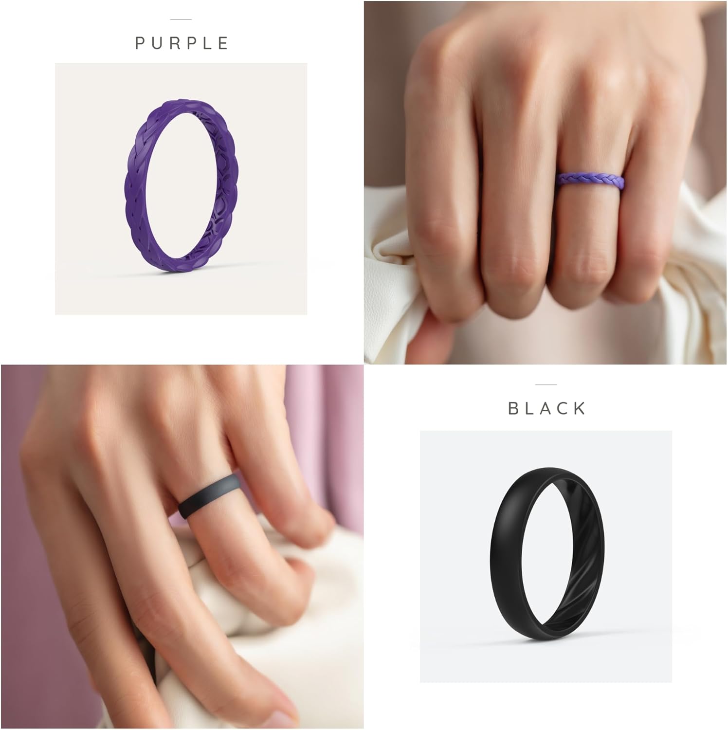 ThunderFit Silicone Rings for Her - Mix Women's Silicone Wedding Rings, 1.8mm Thick Rubber Engagement Rings Braided & 4mm Classic Rings Combo
