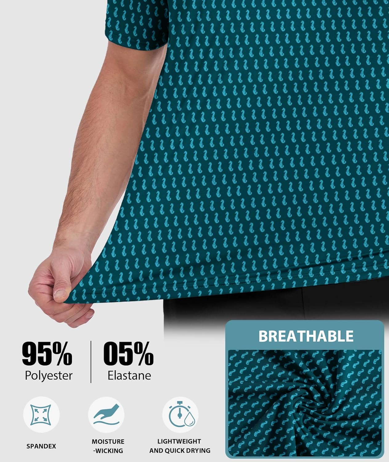 ZITY Mens Golf Shirts Short Sleeve Print Patterns Performance Moisture Wicking Polo Shirt