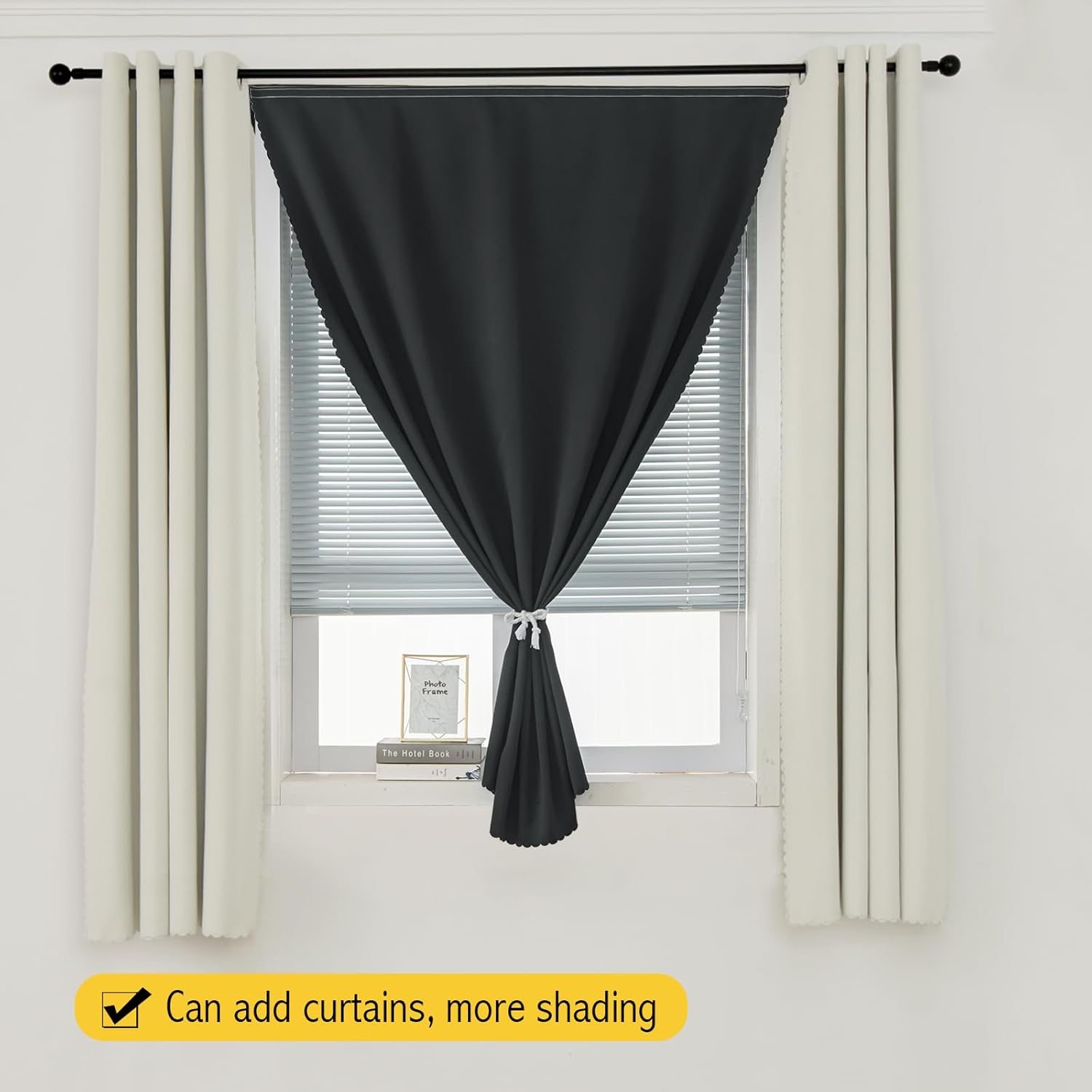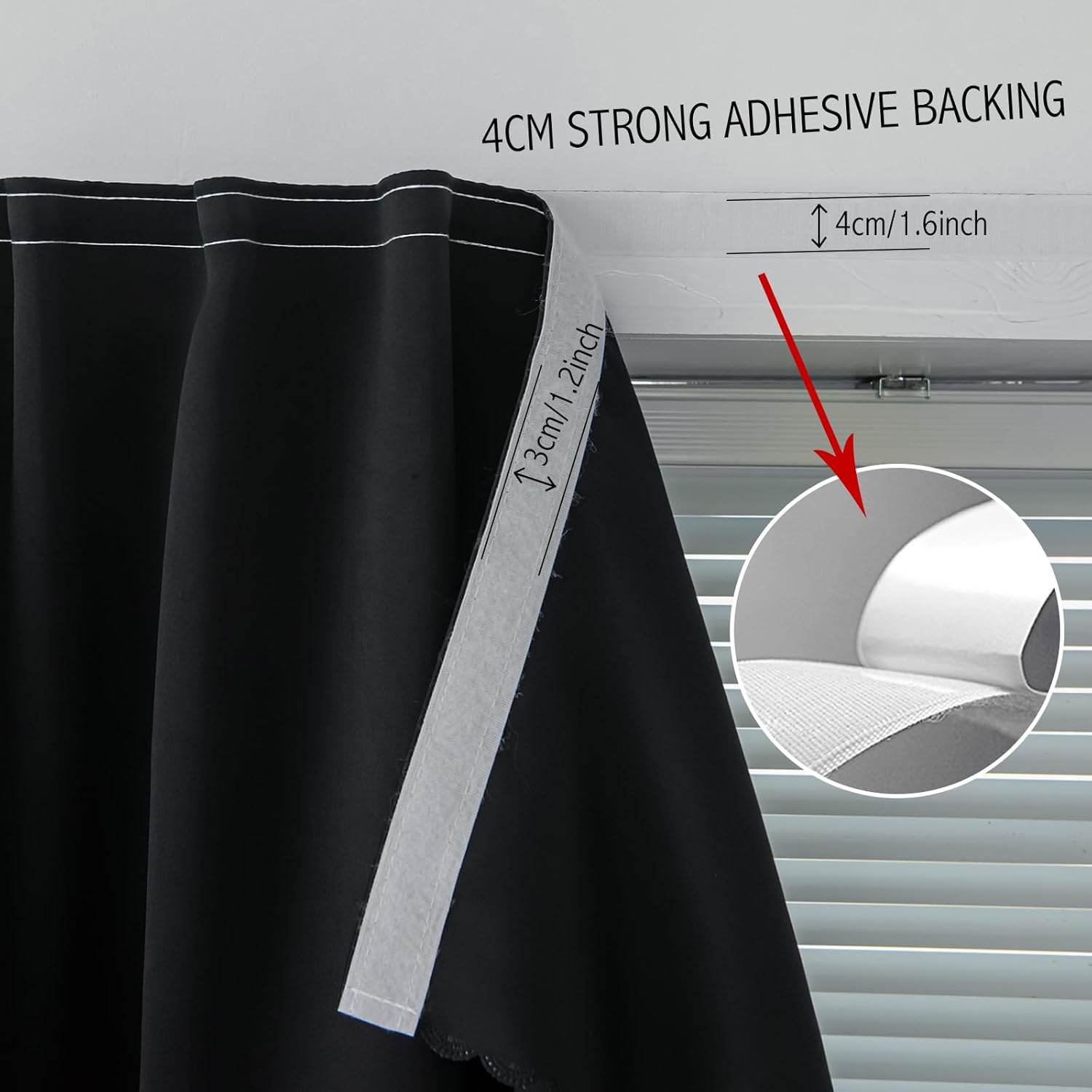 Adhesive Blackout Curtains- Self Stick Shades Window Blinds Curtains No Rod Needed Easy to Hang Curtains, Use for Bedroom, Living Room, Dining Room, Kitchen, Home Office, 35"W X 59"L, Black, 1