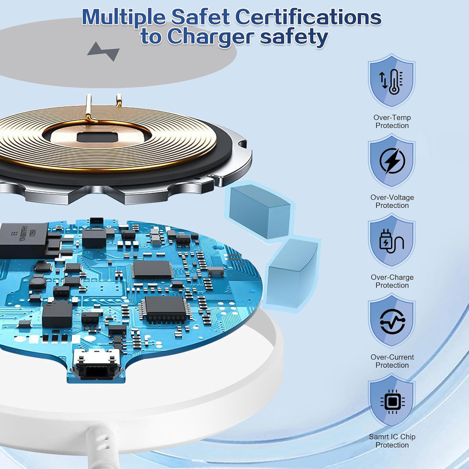 【Superior Safety Wireless Charger iPhone】 This wireless charging pad for iPhone 16 15 Pro uses advanced technology to provide you with a better and safer fast charging experience, prevent your iPhone from overcharging, over-current, over-voltage, overheating, and short circuits. The optimized magnetic design makes charging easier, improving energy conversion and reducing heat while charging,protect your equipment safe and fast charging.