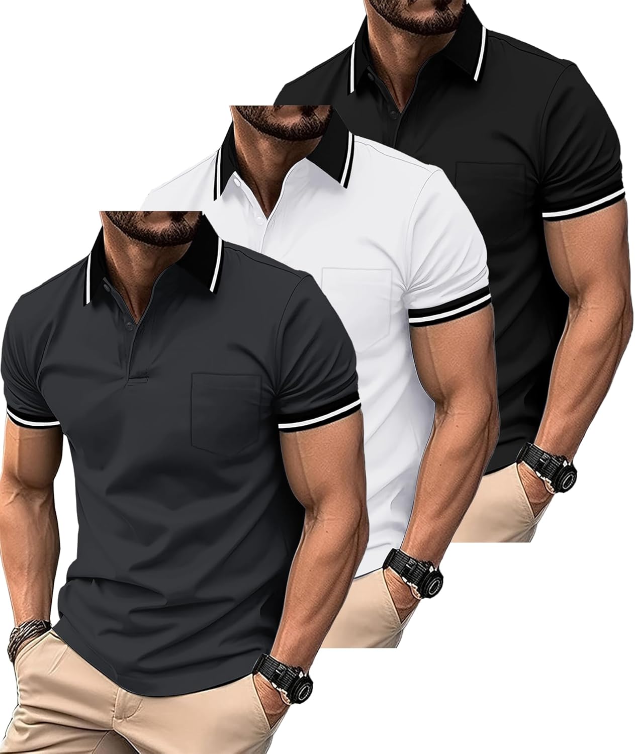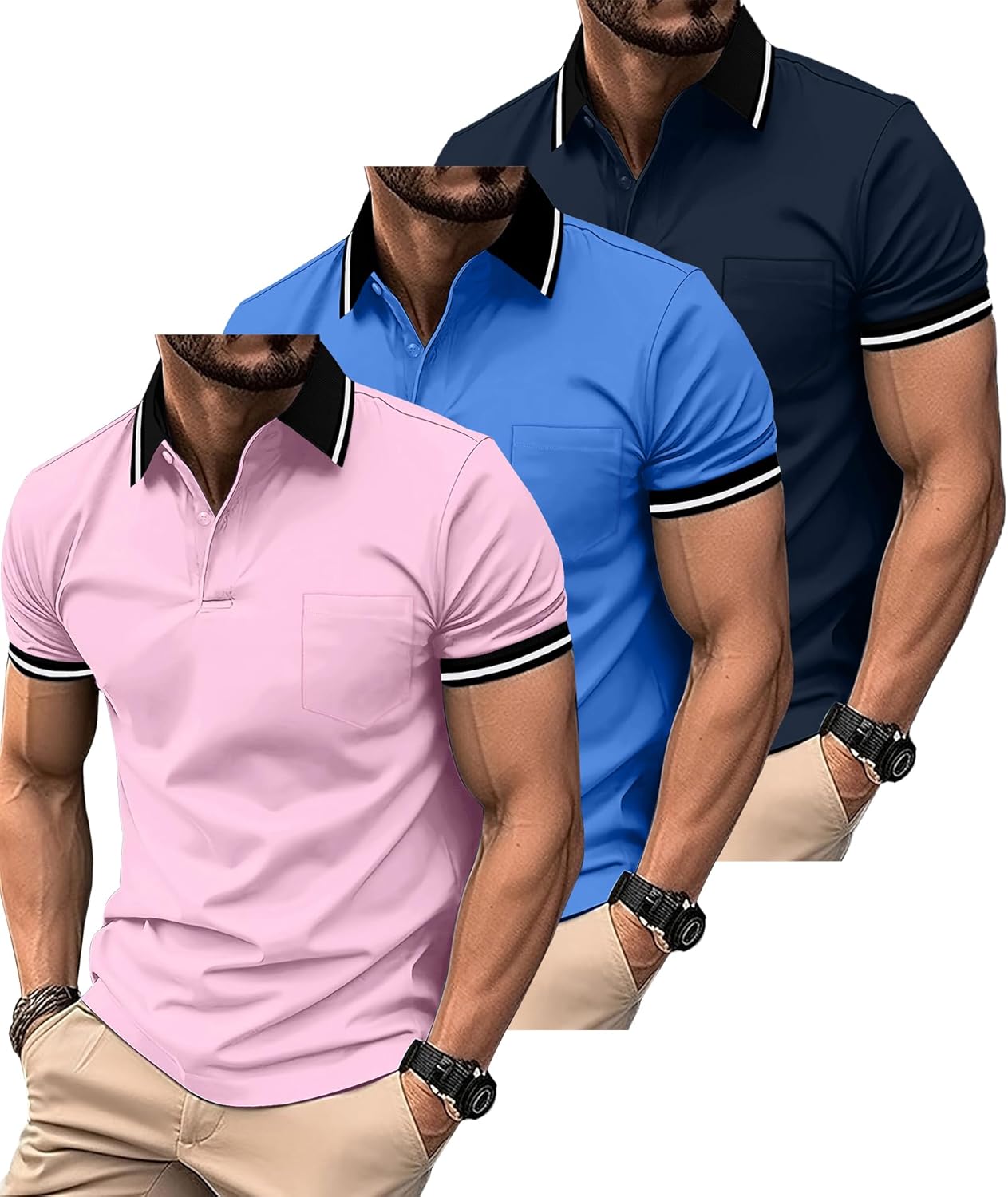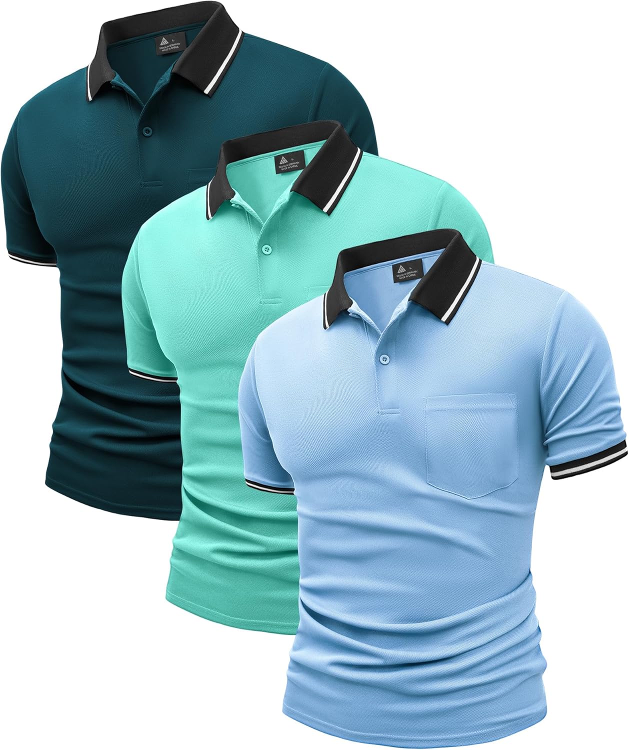 ZITY 3 Pack Men Polo Shirts Short Sleeve with Pocket Sport Wicking Shirts for Men Casual Athletic Collared T-Shirts