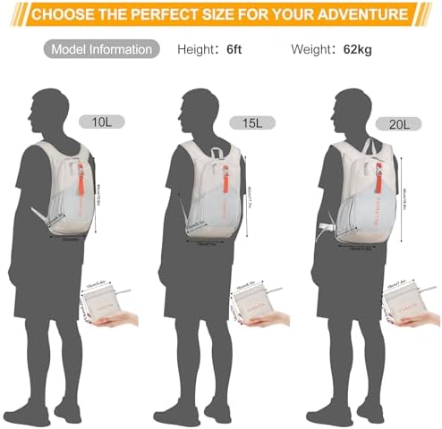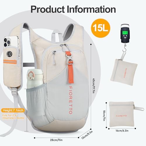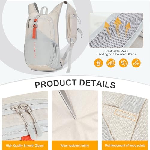 FIORETTO 15L Hiking Backpack for Women Men Mini Packable Backpack Lightweight Small Daypack for Camping Travel Outdoor, Beige