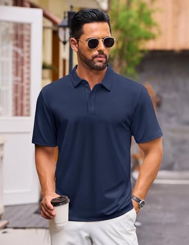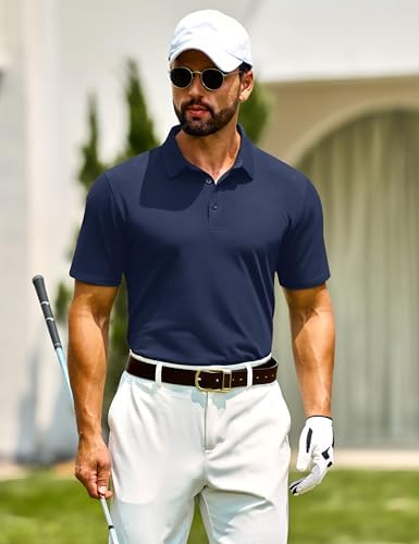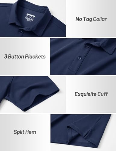 Cotrasen Men's Polo Shirts Short Sleeve Soft Cotton Pique T-Shirts 3 Buttons Classic Fit Casual Performance Golf Shirts