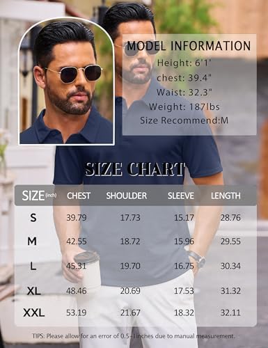 Great Quality: Made of premium cotton blend material. Super Soft, Comfortable, Lightweight, Breathable, Stretchy. This men's polo shirt keeps you cool and comfortable whether you're out or relaxing at home. Cooling & Moisture Wicking: The polo shirt for men features a unique design with moisture-wicking cotton material that provides instant coolness, perfect for keeping you cool during the summer. Classic: Polo t shirts for men feature classic and athletic design. With a three-button placket, no tag collar, breathable fabric, the polo shirt boasts a trendy hem slit design, making it stylish and sporty. It's a must-have fashion item in your wardrobe. Occasion: Men's short sleeve polo tops are versatile, great for golf, tennis, hiking, fishing and other sports, also good for business, work, daily wear and casual occasions. You can match them with jeans, casual pants, shorts or long pants. Polo Shirts Care: Polo golf tee shirts hand wash recommend, machine wash acceptable, not easy to wrinkle, colorfast. Do not bleach, tumble dry low. Please refer to the size chart in description before you order it.