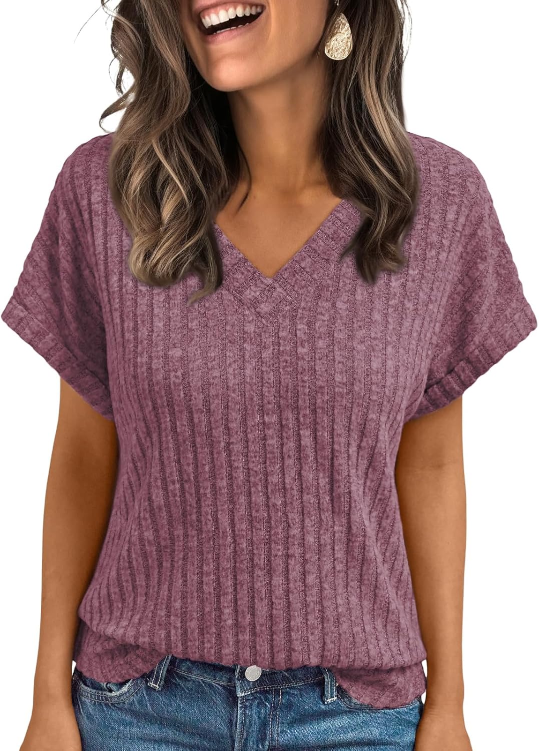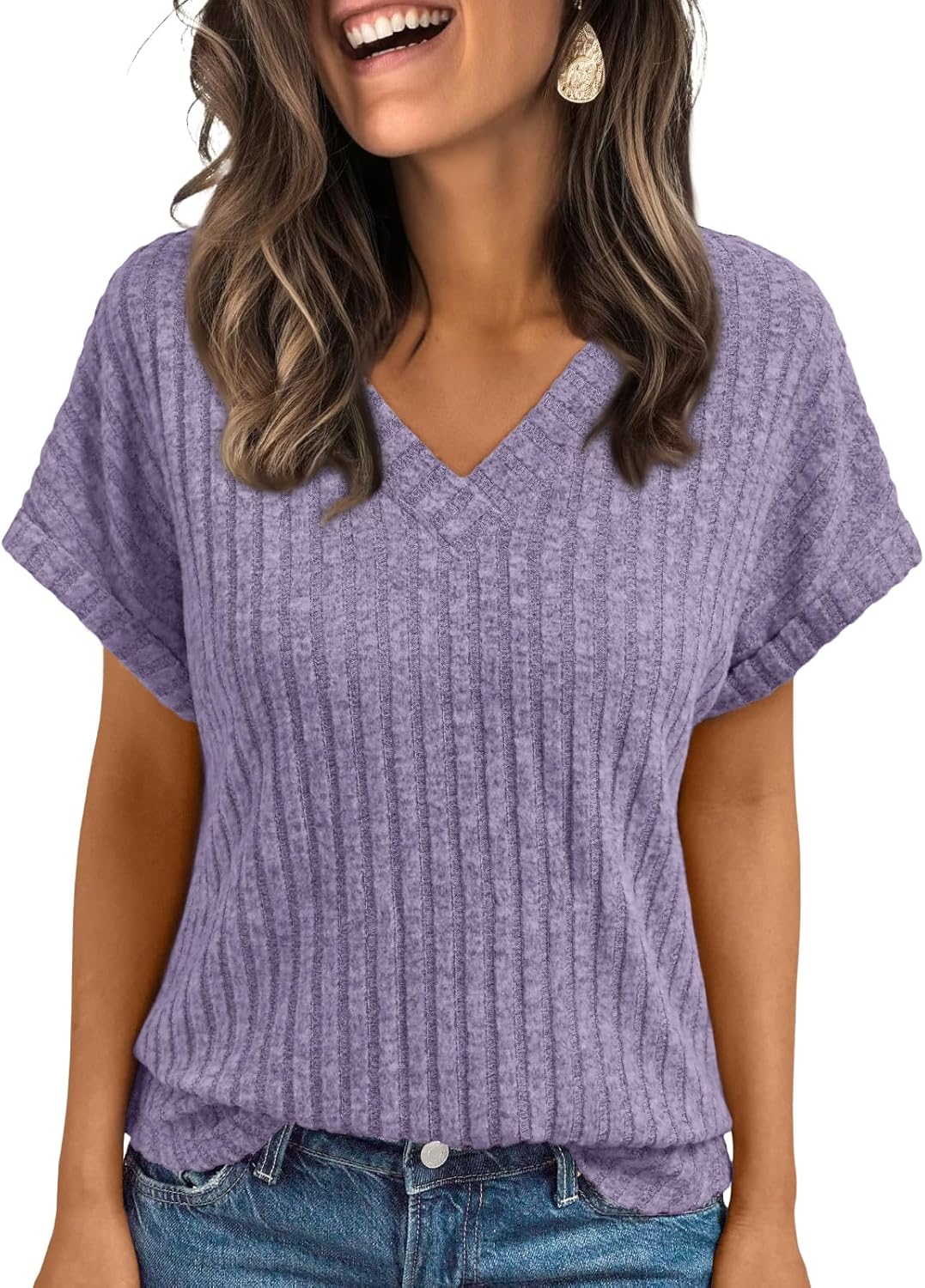 AUTOMET Womens Spring Tops 2026 Summer Dressy Casual Blouses Short Sleeve Cute V Neck Sweater Shirts Fashion Vacation Clothes