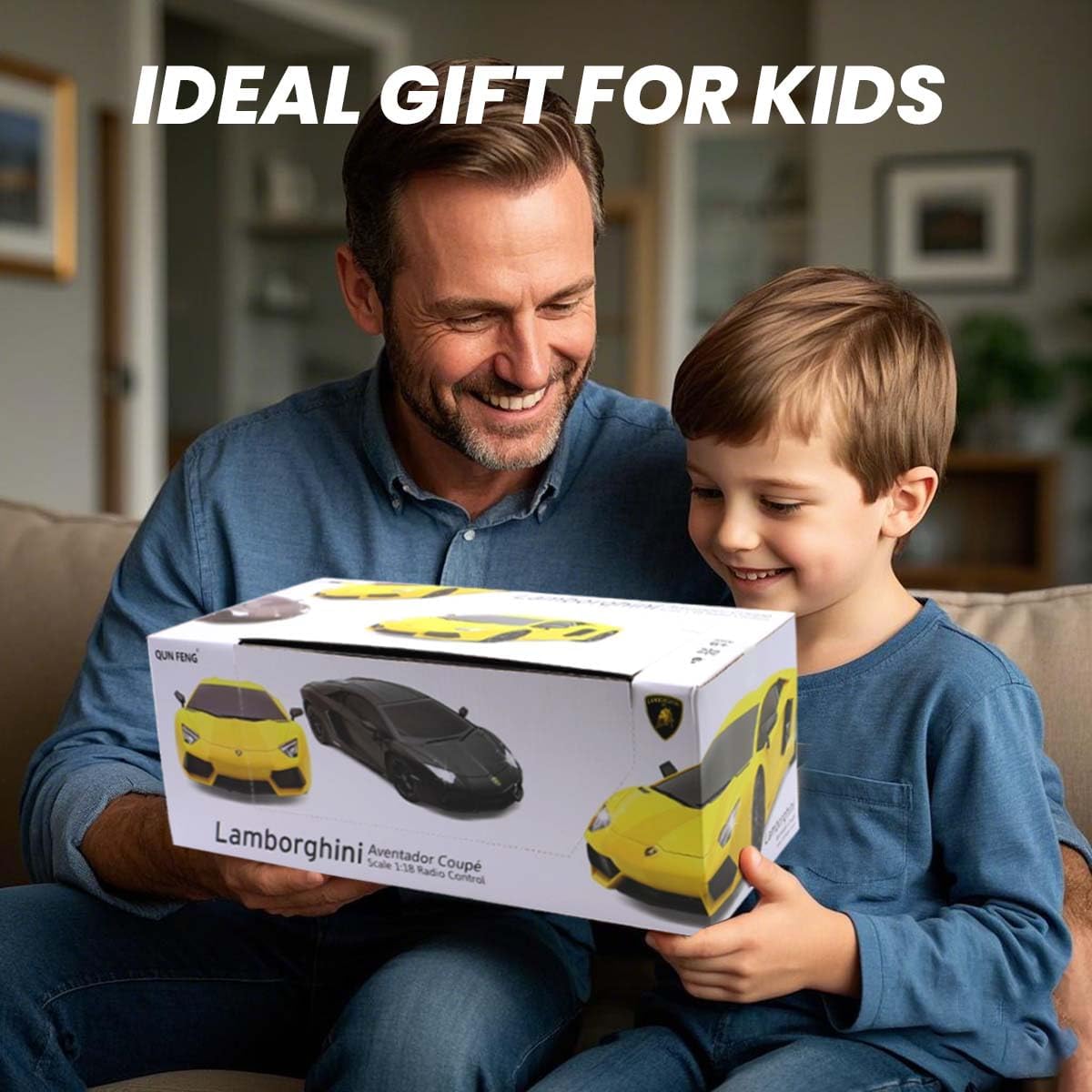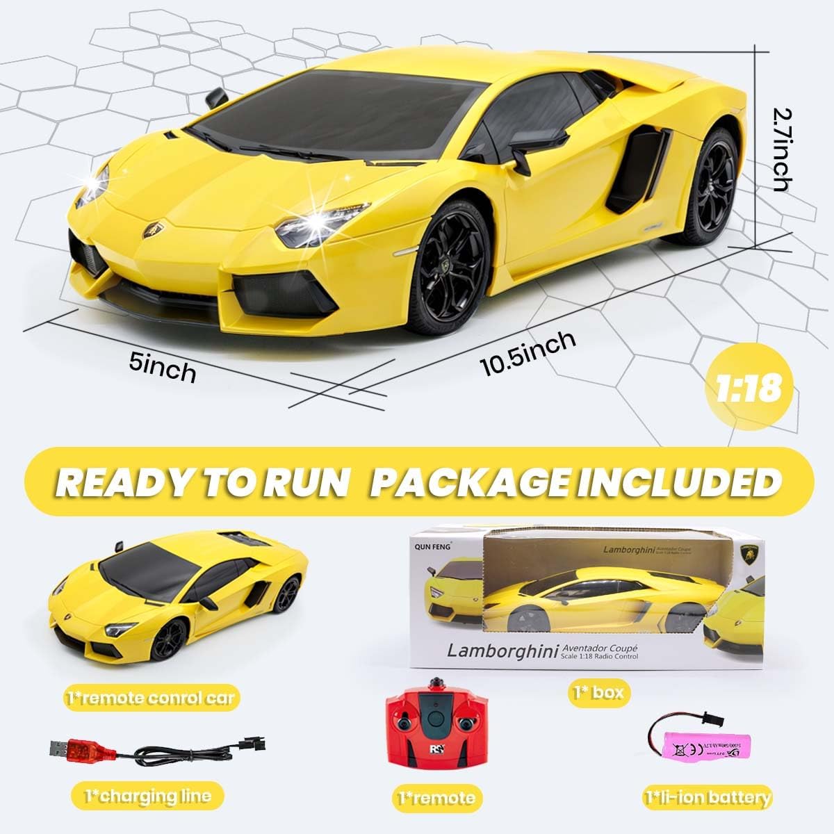QUN FENG Official Licensed Lamo LP-700 1:18 Scale Remote Control Car for Kids 8-12 Years, RC Car with Rechargeable Battery 3.7V 500mAh, 2.4GHz Matte Yellow