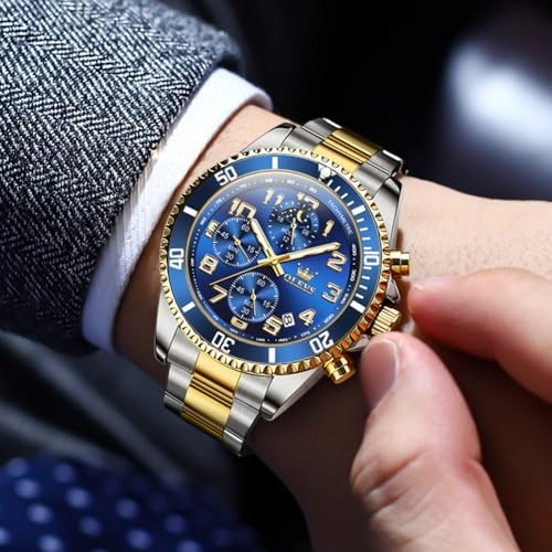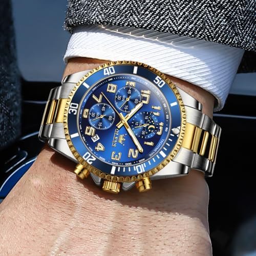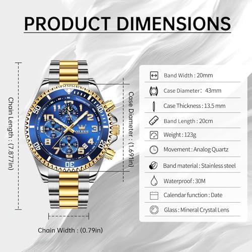 【Elegant and Grand Design】This men's watch features a blue round case and a multifunctional dial design. It has a dual calendar display for the day of the week and the date. The luminous hands are paired with a dual-time world time display function. 【High-quality Men's Watch】The strap of this men's watch is made of stainless steel. From the selection of materials to the calibration of functions, every detail reflects our pursuit of quality, perfectly integrating fashion and practicality. 【Men's Large-faced Round Dial】The diameter of the watch case is 43.00 millimeters, the thickness of the watch case is 13.5 millimeters, the length of the strap is 20 centimeters, and the strap size is a standard men's size. If the strap is not suitable, a stainless steel strap adjustment tool is included in the watch packaging, making it convenient for you to adjust it according to the size of your wrist. 【Complete Practical Functions】This watch has a water resistance of 30 meters. It can withstand handwashing and rain, and easily deal with daily splashes. It is also suitable for outdoor activities such as mountain climbing and hiking. It is recommended to avoid wearing this watch while swimming or taking a bath to ensure the long-term durability of the watch. 【The best gift】This stainless steel men's business watch is an ideal gift for occasions such as festivals, birthdays, and weddings. It is luxurious and stylish, and is sure to please relatives and friends.