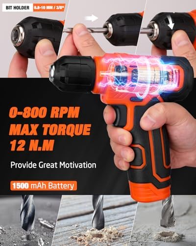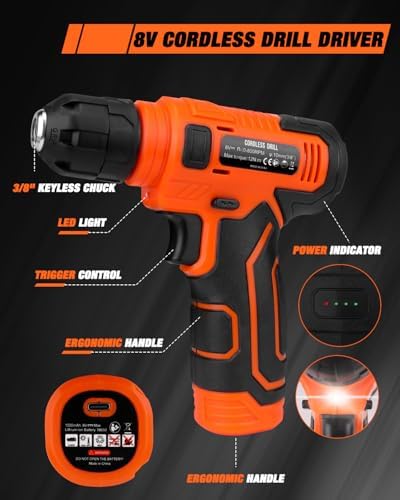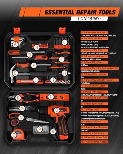 High-quality & Standards: The hand tools are manufactured from premium steel with heat-treated chromium surface treatment, delivering high strength to ensure durability and reliability. 8V Power Cordless Drill with LED: Featuring a compact, ergonomic design, this drill boasts a non-slip grip for secure handling. Its lightweight build enhances maneuverability, while adjustable speed settings (up to 800 RPM no-load speed) adapt to varied applications. The integrated LED light ensures visibility in low-light conditions. Rechargeable Battery: Equipped with a 1500mAh battery and a 1.5A USB charging cable, this power source seamlessly connects to standard chargers or USB ports (5V DC). Real-time charging status is indicated by rear-mounted LEDs, with a solid green signal confirming full charge. Durable & Easy to Carry Storage Case: The included rugged organizer features custom compartments for systematic tool arrangement and quick access. This layout maintains workspace efficiency while safeguarding equipment against damage during storage. Versatile Application: Suitable for various DIY projects and daily repairs, Whether you're a creative DIY enthusiast, a home user handling household maintenance, or a professional seeking efficiency, this tool set is your ideal choice. It empowers you to effortlessly tackle diverse tasks, from furniture assembly and appliance repairs to small woodworking projects.