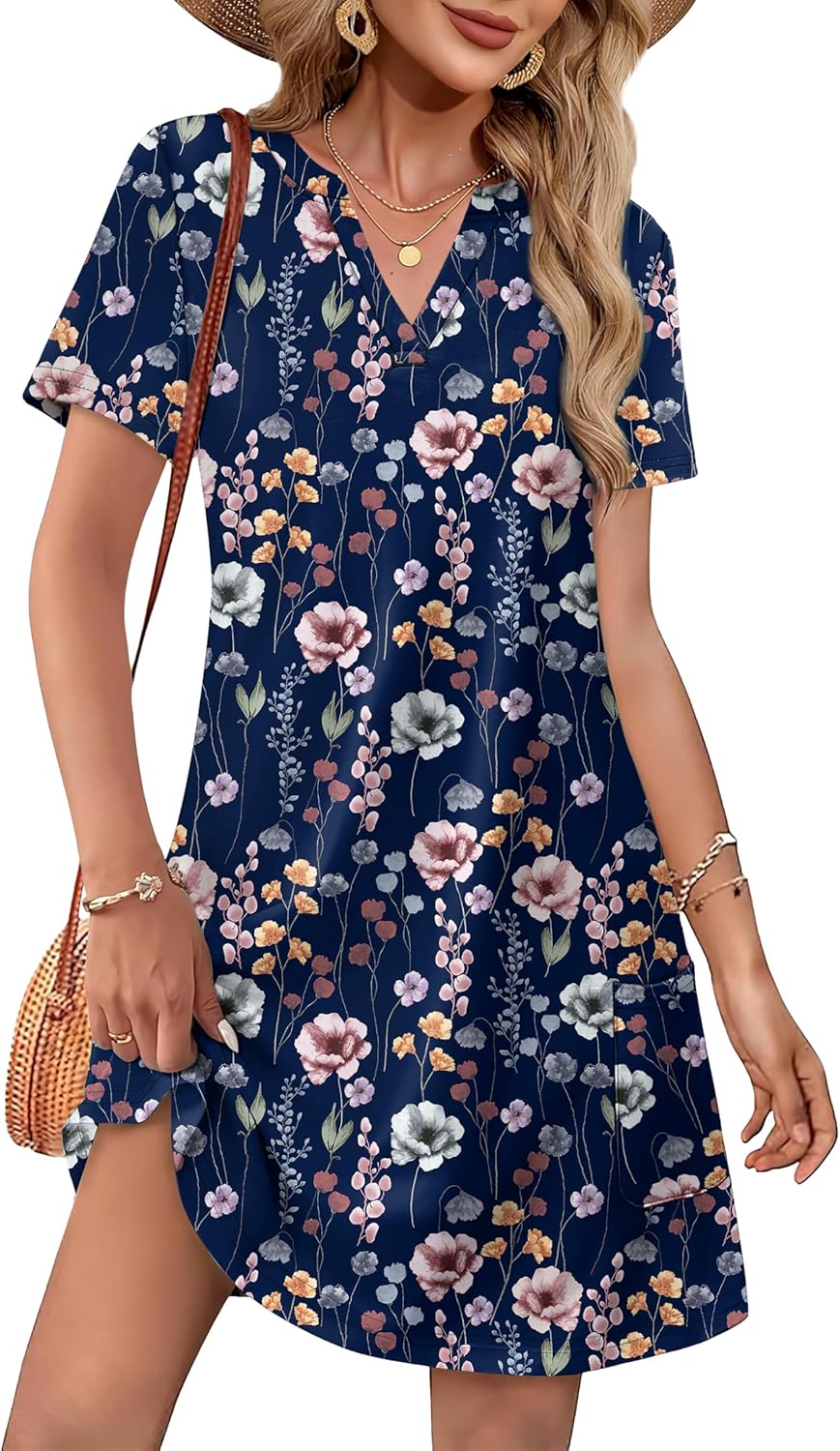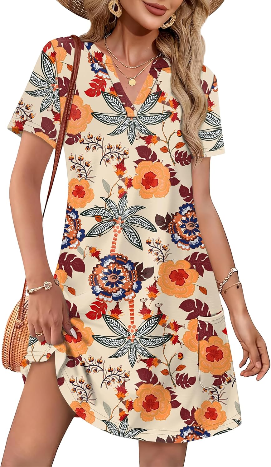 WIHOLL Summer Dresses for Women Casual V Neck Wedding Guest Dress Hawaiian Midi Dress Fashion Beach Vacation Clothes