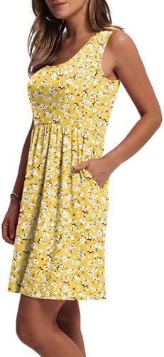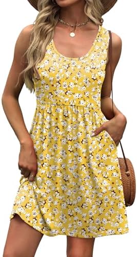 Material: Crafted from soft and lightweight fabric for all-day comfort. Floral prints: 95% Polyester, 5% Spandex. Solid colors: 60% Polyester, 35% Rayon, 5% Spandex. Smooth, breathable, and slightly stretchy — Perfect for staying cool and comfortable on hot summer days—ideal for everyday wear or travel. Features: Scoop neckline, sleeveless cut, high waist, relaxed A-line silhouette, above-knee length, practical side pockets. Available in vibrant solids and playful floral prints — perfect as a graduation dress, spring dress for women 2026, or a breezy sundress for women. Style Tags: summer dresses for women 2026, casual dresses for women, beach vacation clothes for women, floral dress for women, boho dresses for women 2026, mini tank dress, A-line summer dress, sleeveless casual dress. Matches: Style with flat sandals, sneakers, or wedges for a casual summer look. Add a straw hat and tote for a resort-ready vibe or layer with a denim jacket in spring. Perfect for effortless outfit pairing. Occasions: Ideal for beach vacations, weekend outings, casual dates, brunch with friends, graduation parties, or everyday wear. A versatile dress that keeps you cool, cute, and comfortable in spring and summer.