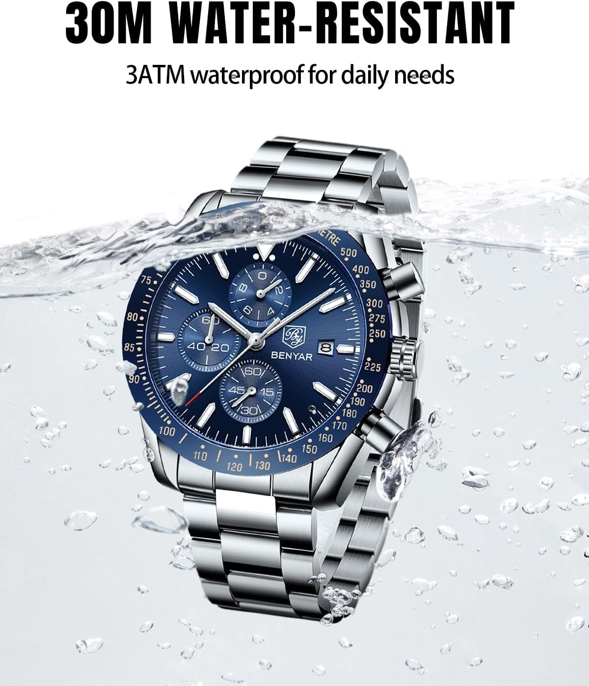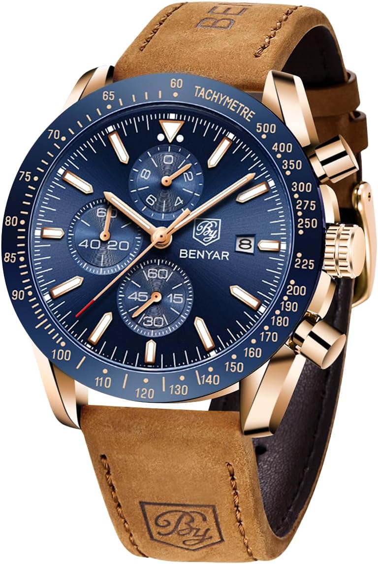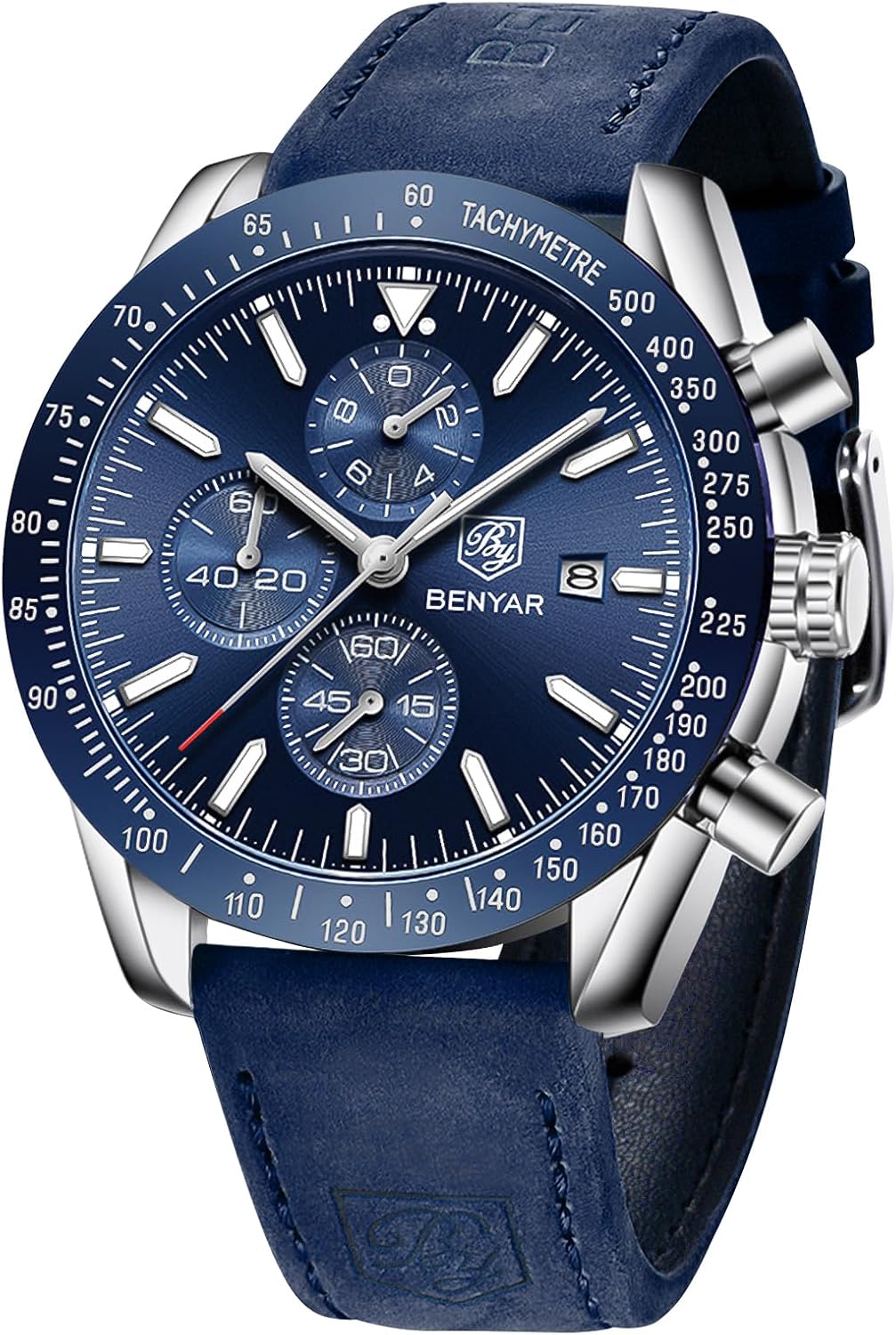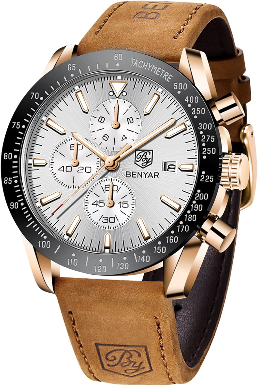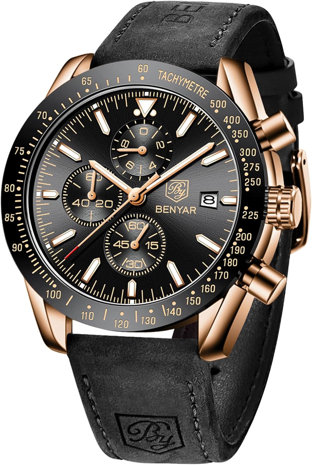 BENYAR Watch for Men Analog Quartz Chronograph Waterproof Luminous Designer Mens Wrist Watches Business Work Sport Casual Dress Watch with Silicone Strap Elegant Gifts for Men