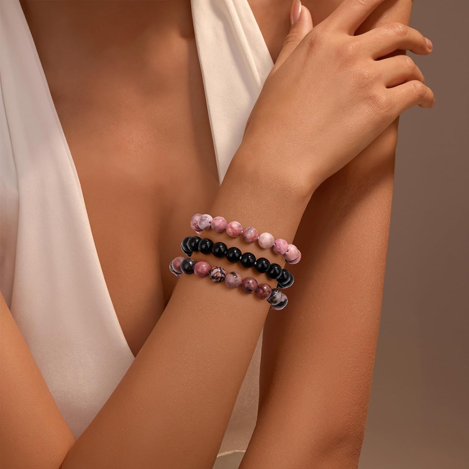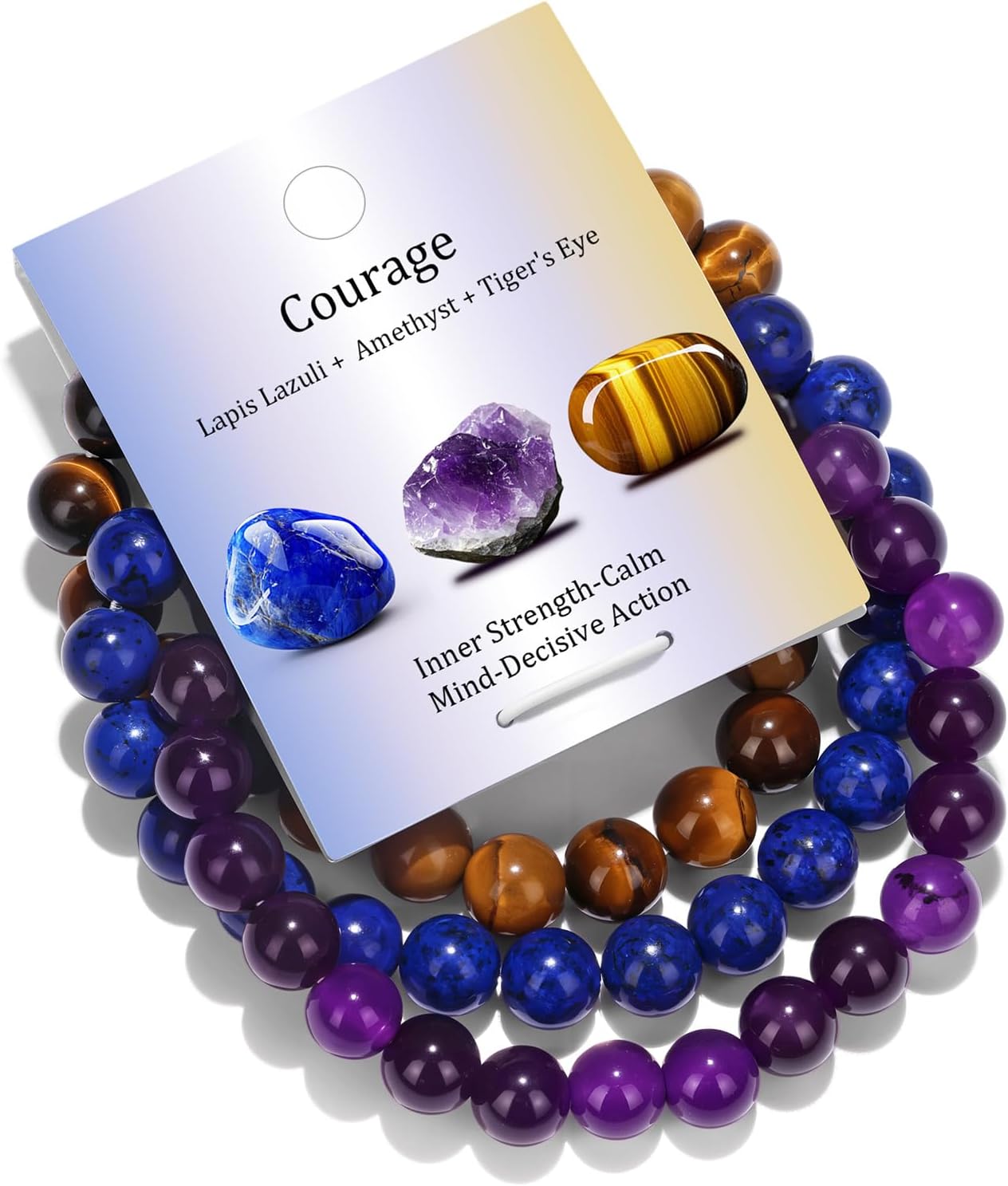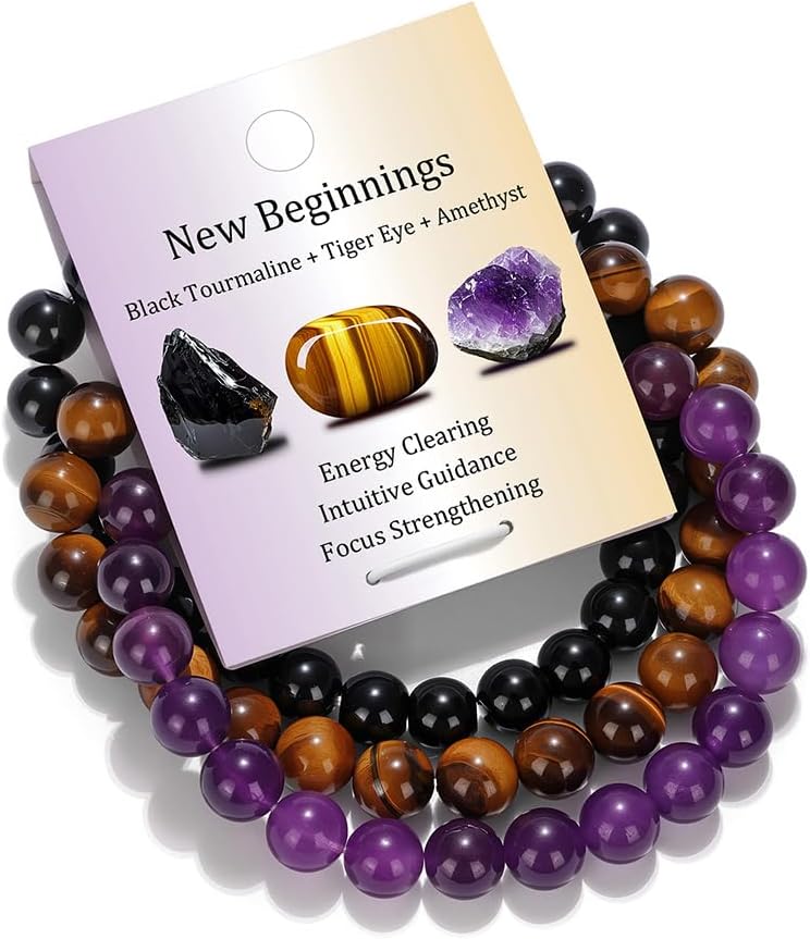 Vinswet Healing Crystal Bracelets for Women Men 8mm Tiger Eye Hematite Black Obsidian Natural Stone Beaded Stretch Bracelet Triple Protection Handmade Gemstone Reiki Spiritual Jewelry Gifts
