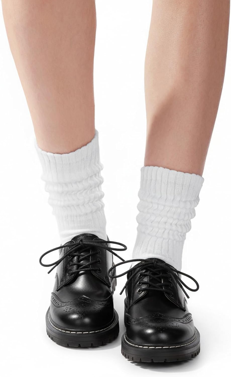 COZYOFFI Womens Scrunch Crew Socks: Retro Solid Slouch Mid Calf Socks - Cotton Casual Athletic Socks