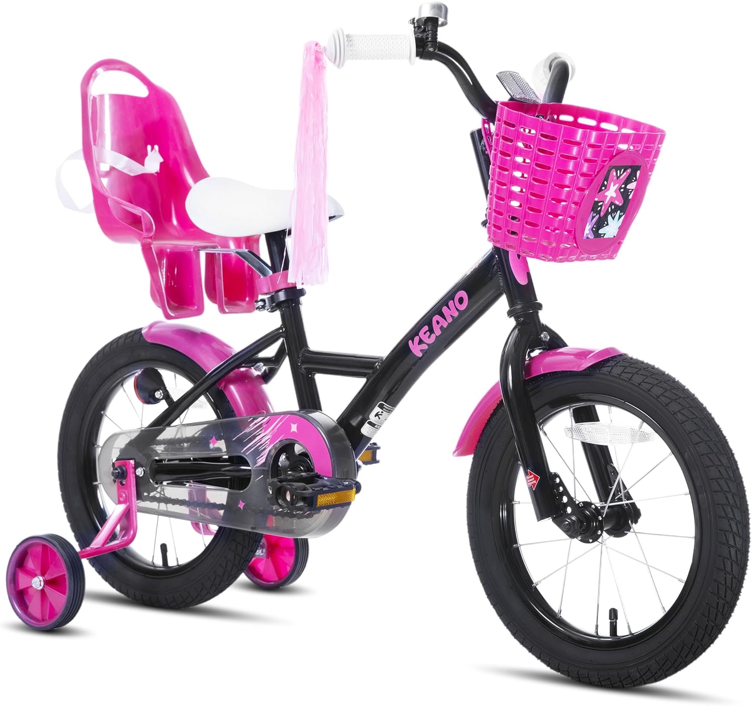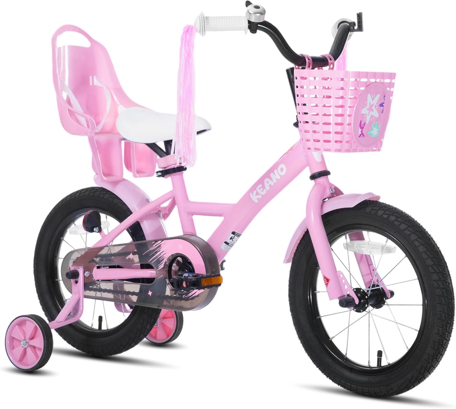 KEANO Zinnia 14 16 20 Inch Kids Bike for Girls Ages 3-10 Years, Girls' Bikes with Training Wheels, Streamers, Basket and Doll Seat, Children Bicycles